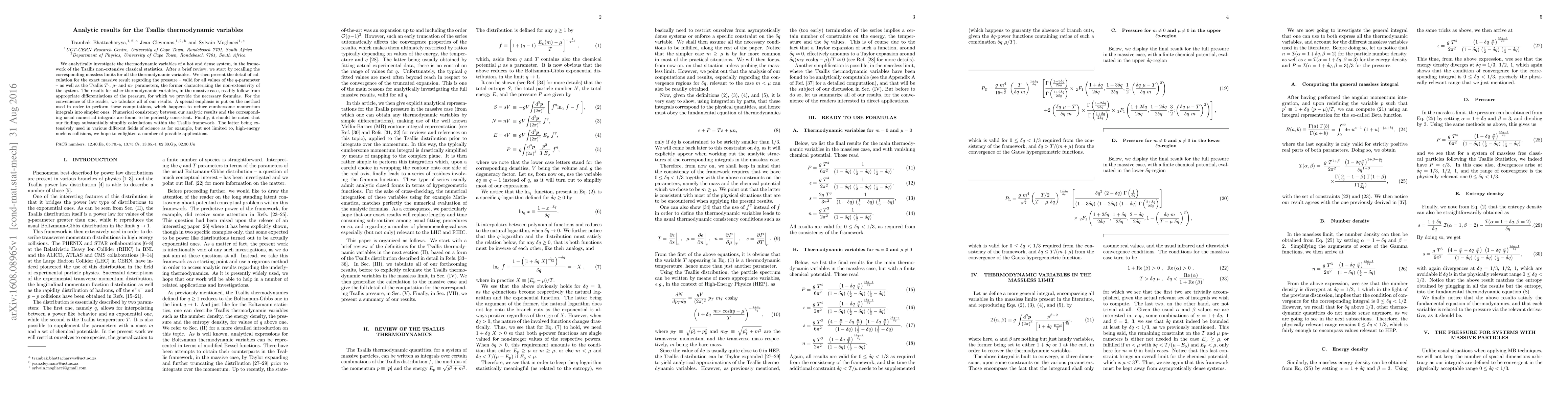 We analytically investigate the thermodynamic variables of a hot and dense system, in the framework of the Tsallis non-extensive classical statistics. After a brief review, we start by recalling the corresponding massless limits for all the thermodynamic variables. We then present the detail of calculation for the exact massive result regarding the pressure -- valid for all values of the $q$-parameter -- as well as the Tsallis $T$-, $\mu$- and $m$- parameters, the former characterizing the non-extensivity of the system. The results for other thermodynamic variables, in the massive case, readily follow from appropriate differentiations of the pressure, for which we provide the necessary formulas. For the convenience of the reader, we tabulate all of our results. A special emphasis is put on the method used in order to perform these computations, which happens to reduce cumbersome momentum integrals into simpler ones. Numerical consistency between our analytic results and the corresponding usual numerical integrals are found to be perfectly consistent. Finally, it should be noted that our findings substantially simplify calculations within the Tsallis framework. The latter being extensively used in various different fields of science as for example, but not limited to, high-energy nucleus collisions, we hope to enlighten a number of possible applications.