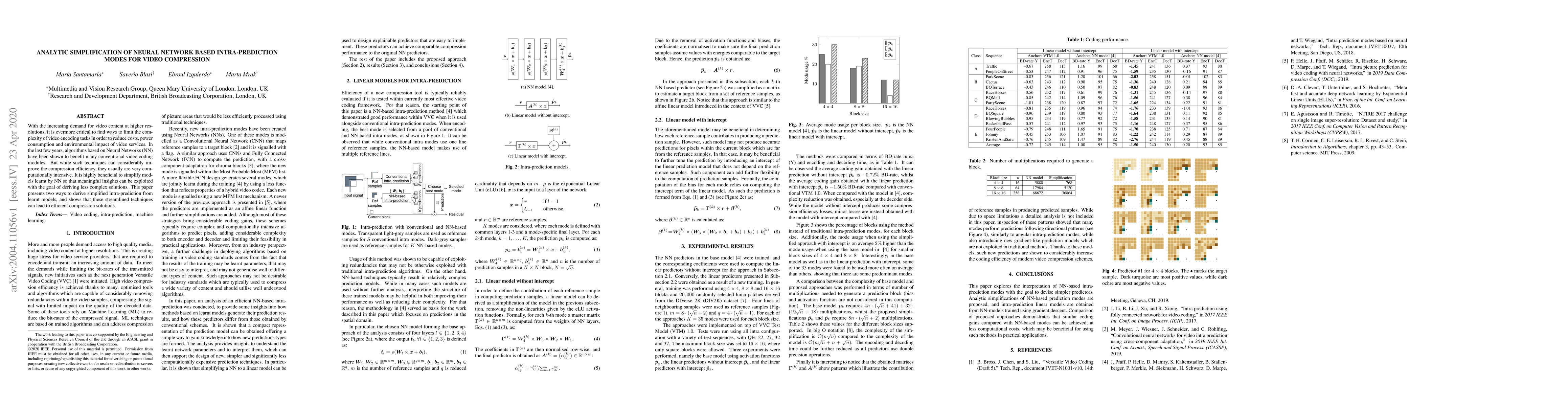 With the increasing demand for video content at higher resolutions, it is evermore critical to find ways to limit the complexity of video encoding tasks in order to reduce costs, power consumption and environmental impact of video services. In the last few years, algorithms based on Neural Networks (NN) have been shown to benefit many conventional video coding modules. But while such techniques can considerably improve the compression efficiency, they usually are very computationally intensive. It is highly beneficial to simplify models learnt by NN so that meaningful insights can be exploited with the goal of deriving less complex solutions. This paper presents two ways to derive simplified intra-prediction from learnt models, and shows that these streamlined techniques can lead to efficient compression solutions.