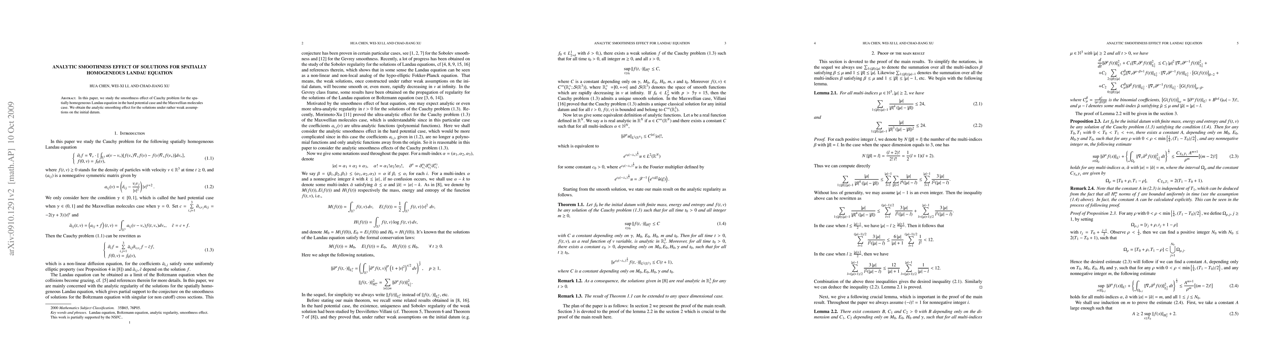 Summary: This paper investigates the analytic smoothing effect for solutions to the spatially homogeneous Landau equation under the hard potential and Maxwellian molecules cases, demonstrating improved smoothness under minimal initial conditions.