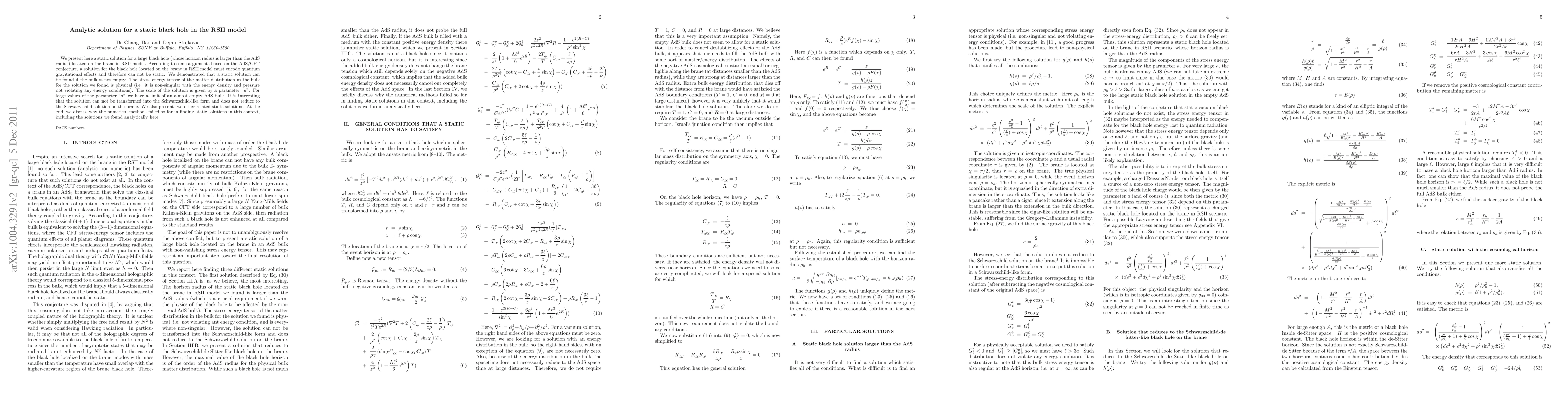 Researchers found a static black hole solution in the RSII model that encodes quantum gravitational effects, which contradicts the AdS/CFT conjecture. This discovery was made possible by assuming a non-empty bulk, and it challenges existing numerical methods for finding such solutions.