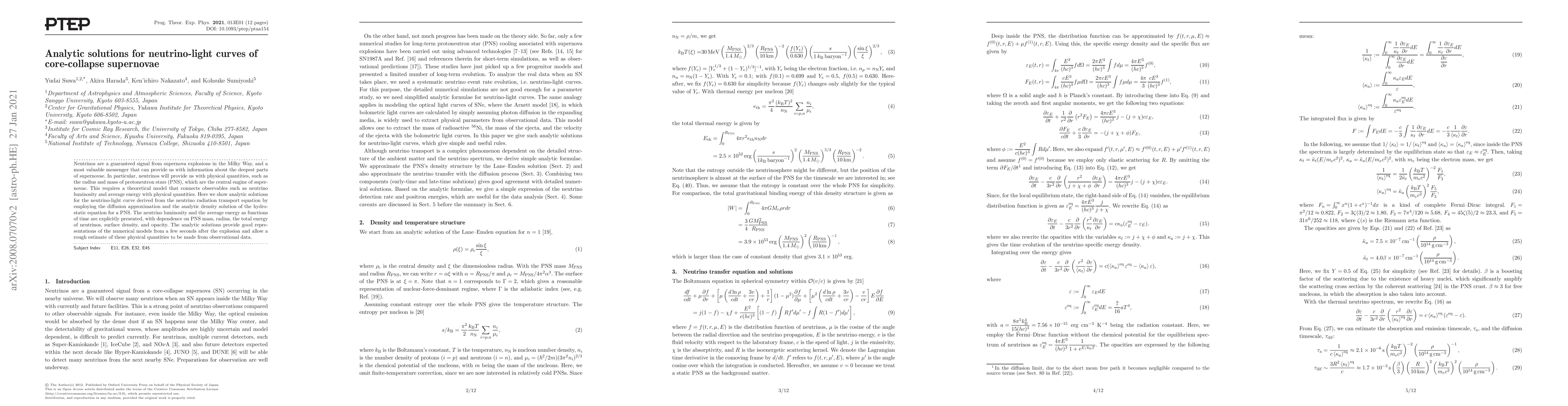 This paper provides analytic solutions for neutrino-light curves of core-collapse supernovae, offering a way to estimate physical quantities from observational data with good accuracy.