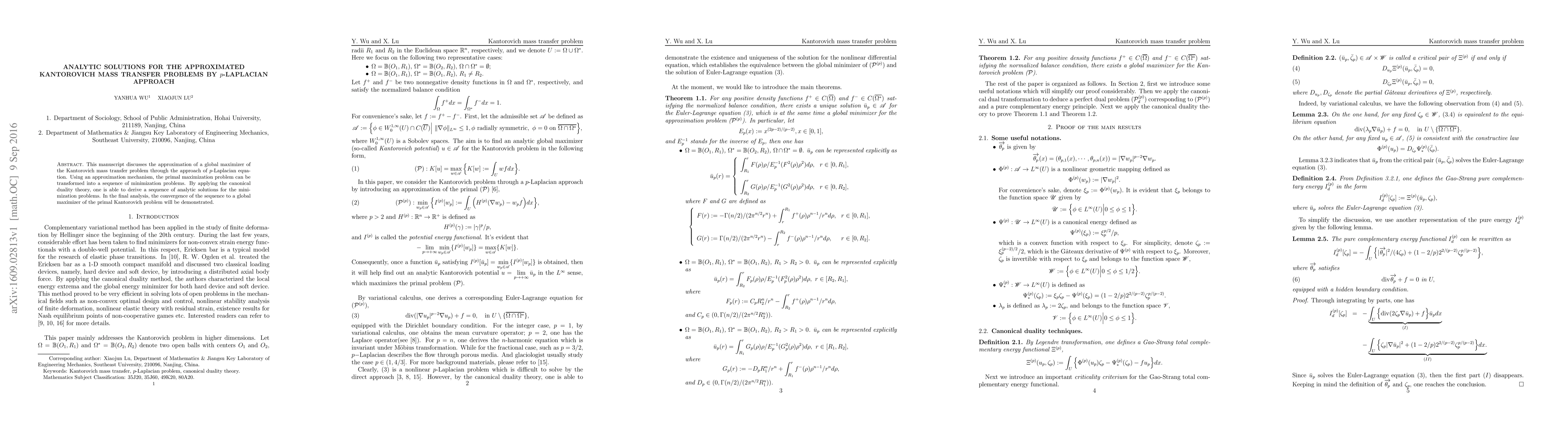This manuscript discusses the approximation of a global maximizer of the Kantorovich mass transfer problem through the approach of $p$-Laplacian equation. Using an approximation mechanism, the primal maximization problem can be transformed into a sequence of minimization problems. By applying the canonical duality theory, one is able to derive a sequence of analytic solutions for the minimization problems. In the final analysis, the convergence of the sequence to a global maximizer of the primal Kantorovich problem will be demonstrated.