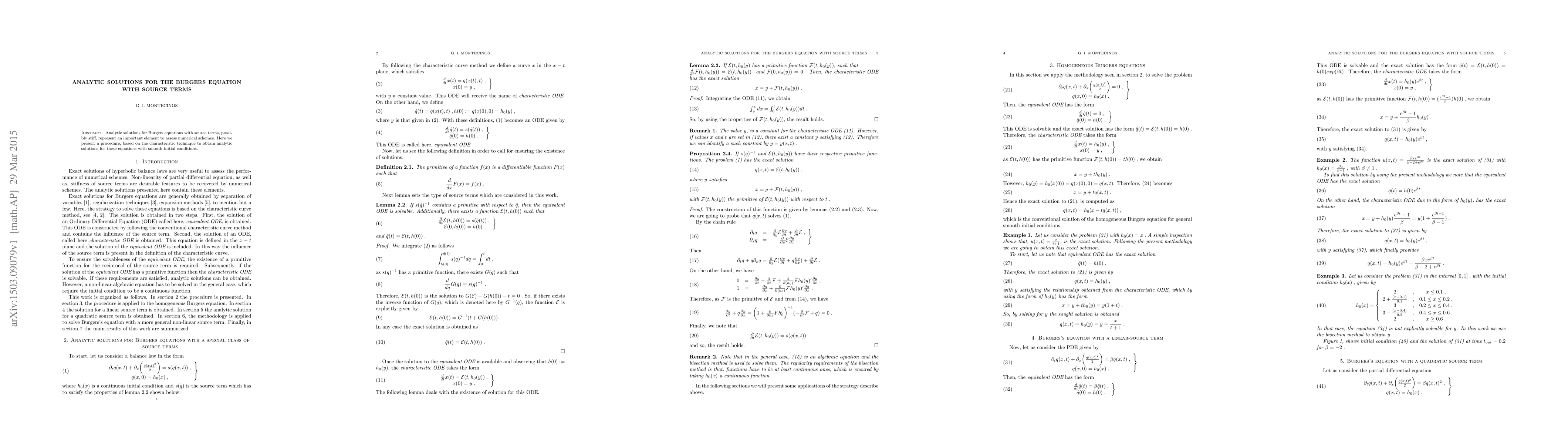 This paper introduces a method using characteristic technique to derive analytic solutions for Burgers equations featuring source terms, aiding in the evaluation of numerical schemes for these equations with smooth initial data.