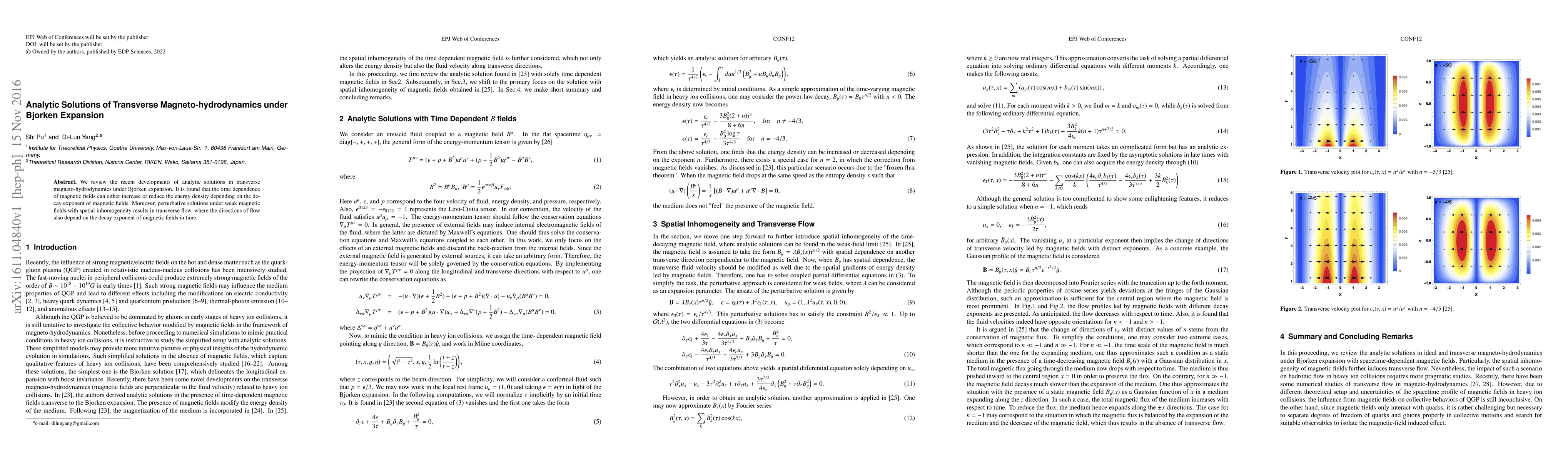 This paper reviews analytic solutions for transverse magneto-hydrodynamics under Bjorken expansion, finding that magnetic fields' time dependence affects energy density and that weak magnetic fields with spatial inhomogeneity induce transverse flow, both dependent on the magnetic field's decay exponent.