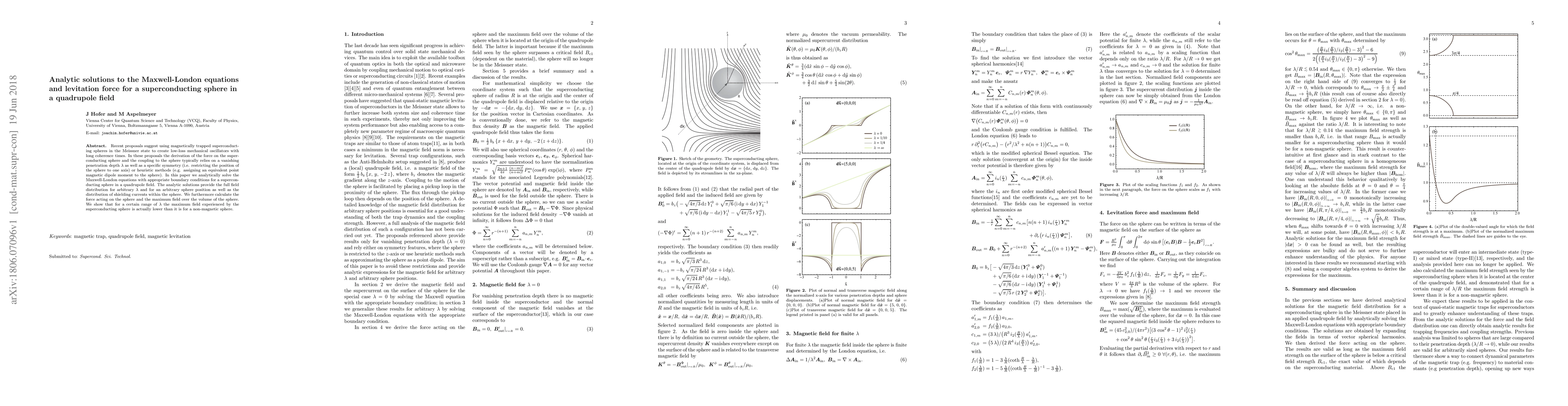 Researchers analytically solved the Maxwell-London equations for a superconducting sphere in a quadrupole field, revealing that for certain values of penetration depth, the sphere experiences a lower maximum field than a non-magnetic sphere.