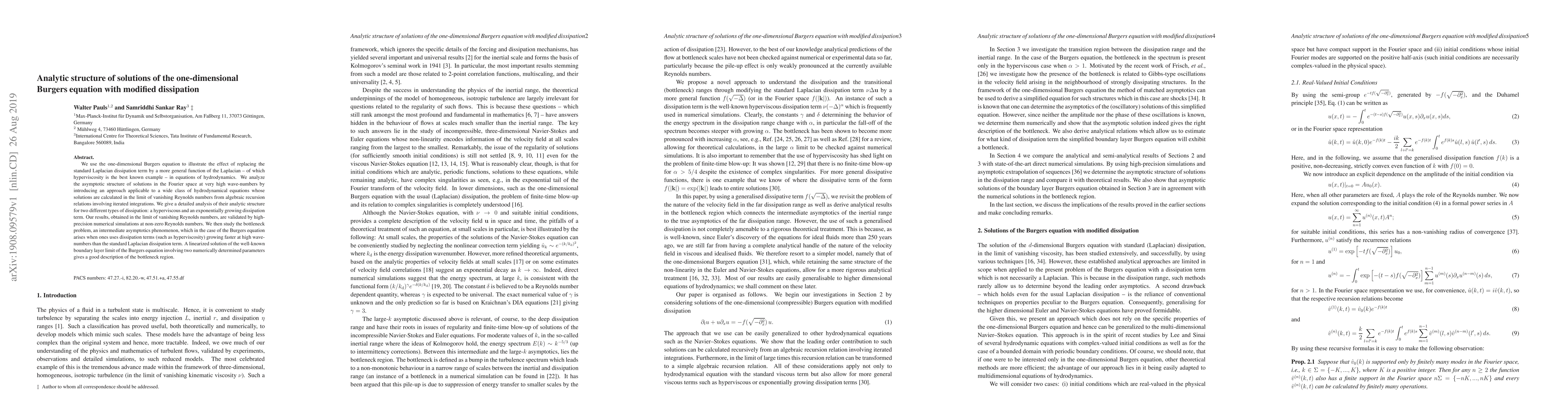 We use the one-dimensional Burgers equation to illustrate the effect of replacing the standard Laplacian dissipation term by a more general function of the Laplacian -- of which hyperviscosity is the best known example -- in equations of hydrodynamics. We analyze the asymptotic structure of solutions in the Fourier space at very high wave-numbers by introducing an approach applicable to a wide class of hydrodynamical equations whose solutions are calculated in the limit of vanishing Reynolds numbers from algebraic recursion relations involving iterated integrations. We give a detailed analysis of their analytic structure for two different types of dissipation: a hyperviscous and an exponentially growing dissipation term. Our results, obtained in the limit of vanishing Reynolds numbers, are validated by high-precision numerical simulations at non-zero Reynolds numbers. We then study the bottleneck problem, an intermediate asymptotics phenomenon, which in the case of the Burgers equation arises when ones uses dissipation terms (such as hyperviscosity) growing faster at high wave-numbers than the standard Laplacian dissipation term. A linearized solution of the well-known boundary layer limit of the Burgers equation involving two numerically determined parameters gives a good description of the bottleneck region.