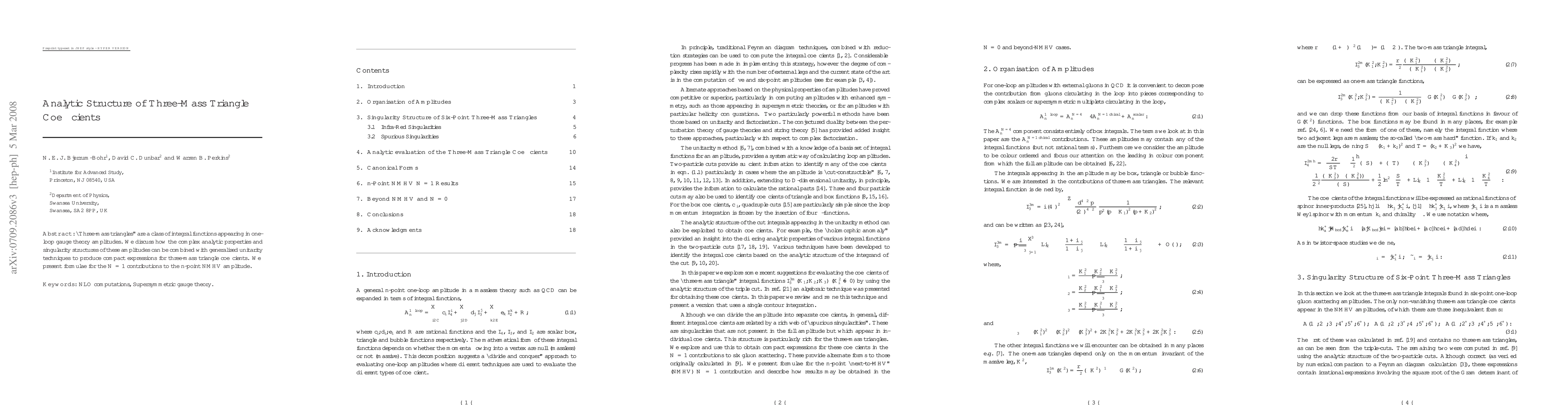 This paper explores the analytic properties and singularities of three-mass triangle integrals in gauge theory, utilizing generalized unitarity techniques to derive compact expressions for triangle coefficients. It provides specific formulae for N=1 contributions to the n-point NMHV amplitude.