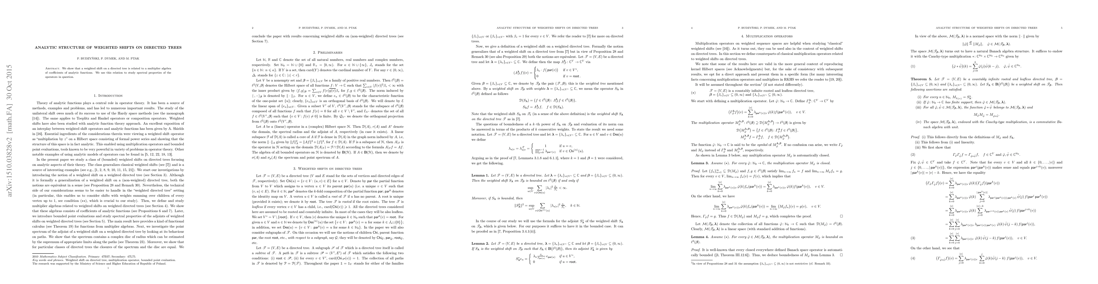 We show that a weighted shift on a directed tree is related to a multiplier algebra of coefficients of analytic functions. We use this relation to study spectral properties of the operators in question.