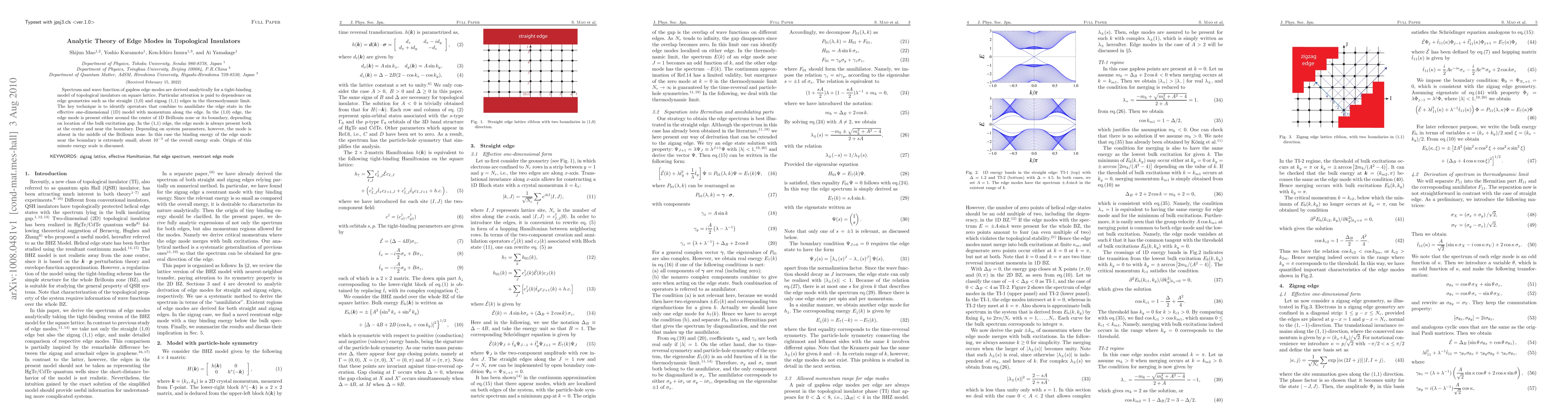 This paper analytically derives the spectrum and wave function of edge modes in topological insulators on a square lattice, focusing on straight and zigzag edge geometries. It identifies operators that annihilate the edge state in an effective 1D model, revealing that edge modes behave differently depending on the edge type and the location of the bulk excitation gap.