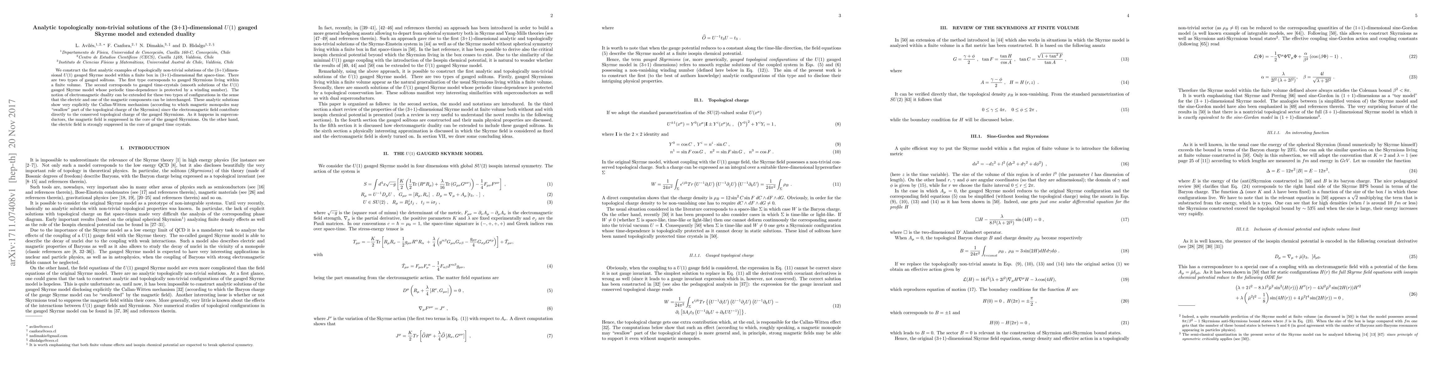 This paper constructs analytic solutions for topologically non-trivial solitons in the (3+1)-dimensional $U(1)$ gauged Skyrme model, identifying two types: gauged Skyrmions and gauged time-crystals. It extends electromagnetic duality and showcases the Callan-Witten mechanism via the interplay between electric and magnetic fields within these solutions.