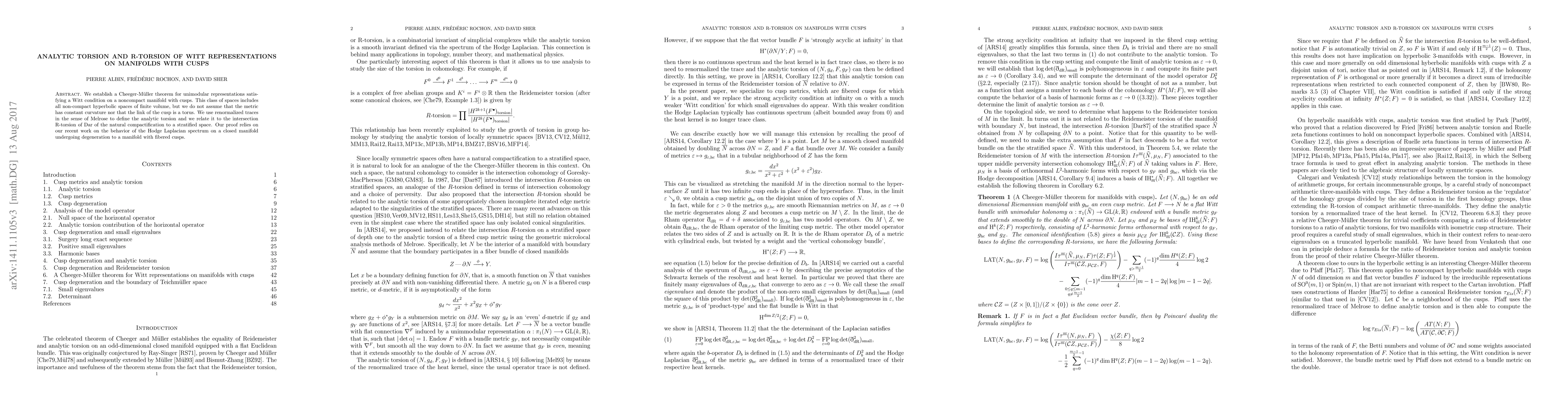 This paper establishes a Cheeger-Müller theorem for unimodular representations on noncompact manifolds with cusps, defining analytic torsion using renormalized traces and relating it to intersection R-torsion. The proof leverages recent findings on the spectral behavior of the Hodge Laplacian under degeneration to manifolds with cusps.