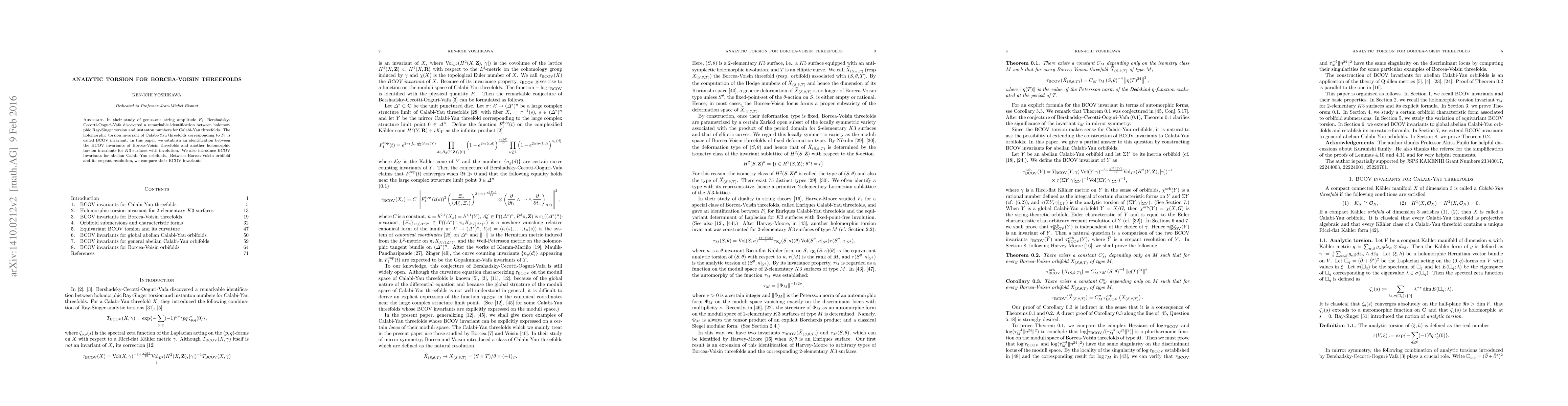 In their study of genus-one string amplitude, Bershadsky-Cecotti-Ooguri-Vafa discovered a remarkable identification between holomorphic Ray-Singer torsion and instanton numbers for Calabi-Yau threefolds. The holomorphic torsion invariant for Calabi-Yau threefolds corresponding to the genus-one string amplitude is called BCOV invariant. In this paper, we establish an identification between the BCOV invariants of Borcea-Voisin threefolds and another holomorphic torsion invariants for K3 surfaces with involution. We also introduce BCOV invariants for abelian Calabi-Yau orbifolds. Between Borcea-Voisin orbifold and its crepant resolution, we compare their BCOV invariants.