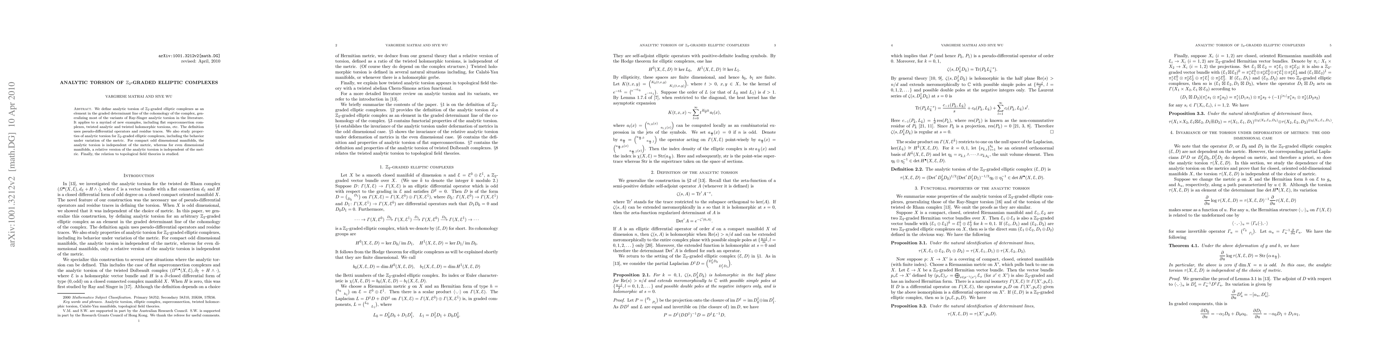 This paper defines analytic torsion for Z_2-graded elliptic complexes, generalizing existing Ray-Singer torsion variants, and applies it to various new examples. It explores properties of this torsion, including its independence from the metric in certain dimensions and its relation to topological field theories.