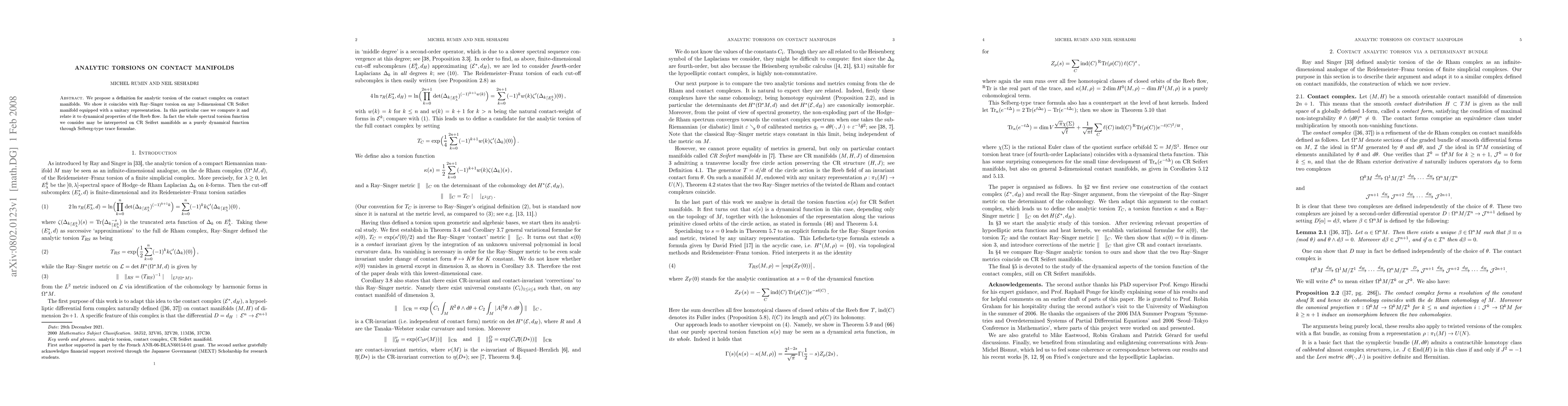 The paper introduces a novel definition and analysis of analytic torsion for the contact complex, extending existing theories to contact manifolds and demonstrating its relation to dynamical systems through the Reeb flow.