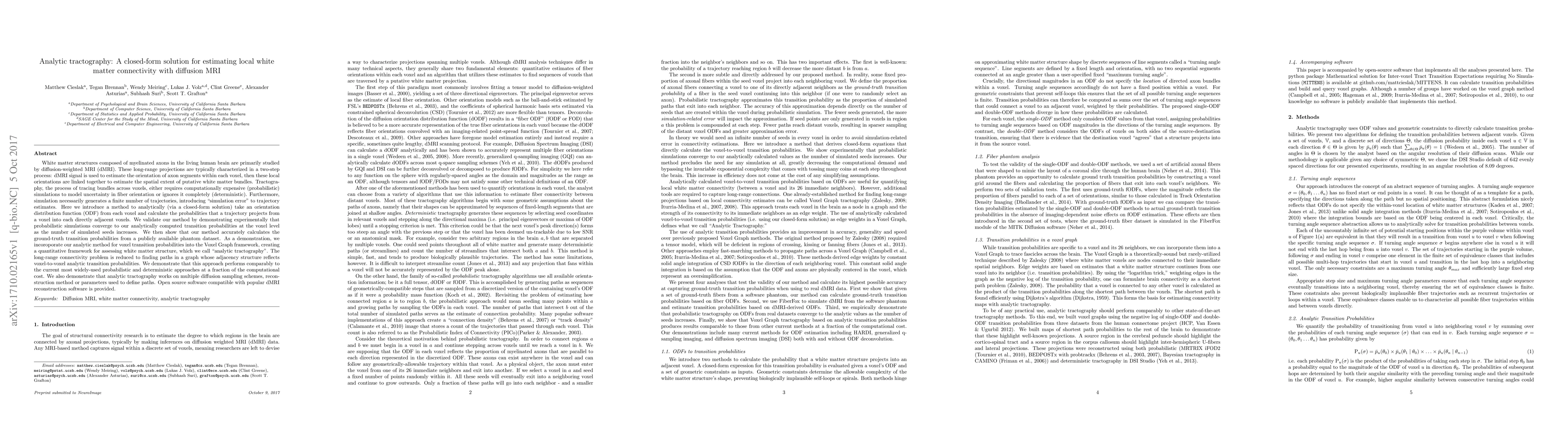 Researchers developed a new method called analytic tractography to estimate white matter connectivity in the brain using diffusion MRI, offering a more accurate and efficient approach than existing probabilistic methods.
