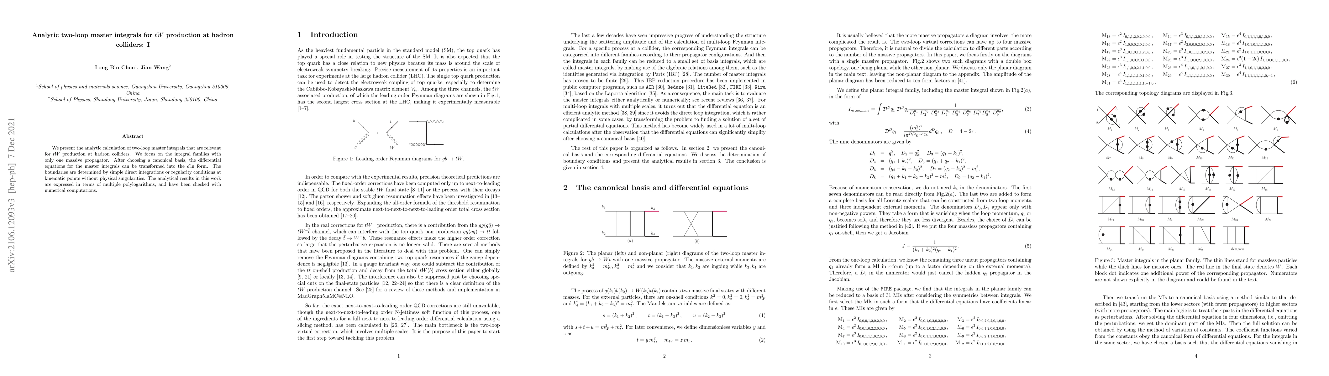 We present the analytic calculation of two-loop master integrals that are relevant for $tW$ production at hadron colliders. We focus on the integral families with only one massive propagator. After choosing a canonical basis, the differential equations for the master integrals can be transformed into the $d$ln form. The boundaries are determined by simple direct integrations or regularity conditions at kinematic points without physical singularities. The analytical results in this work are expressed in terms of multiple polylogarithms, and have been checked with numerical computations.
