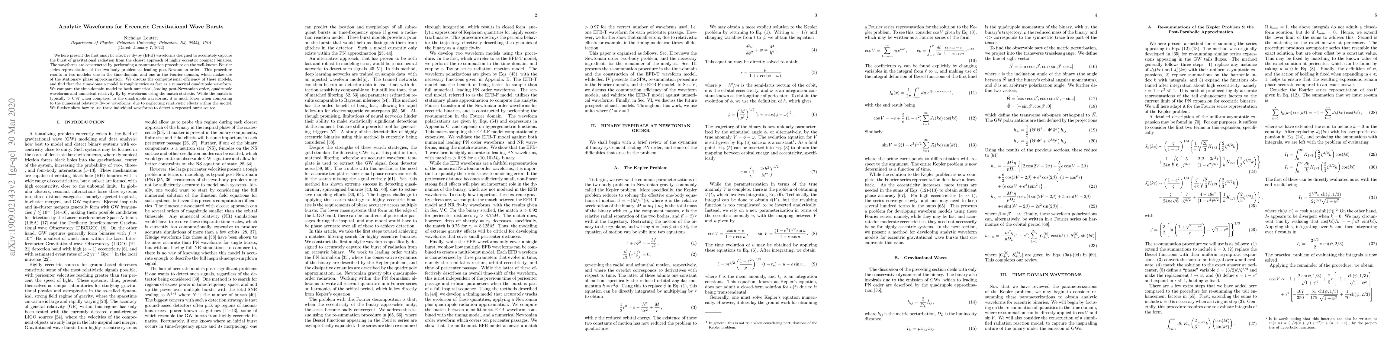 We here present the first analytic effective fly-by (EFB) waveforms designed to accurately capture the burst of gravitational radiation from the closest approach of highly eccentric compact binaries. The waveforms are constructed by performing a re-summation procedure on the well-known Fourier series representation of the two-body problem at leading post-Newtonian order. This procedure results in two models: one in the time-domain, and one in the Fourier domain, which makes use of the stationary phase approximation. We discuss the computational efficiency of these models, and find that the time-domain model is roughly twice as fast as a numerical quadrupole waveform. We compare the time-domain model to both numerical, leading post-Newtonian order, quadrupole waveforms and numerical relativity fly-by waveforms using the match statistic. While the match is typically $>0.97$ when compared to the quadrupole waveforms, it is much lower when comparing to the numerical relativity fly-by waveforms, due to neglecting relativistic effects within the model. We further show how to use these individual waveforms to detect a repeated burst source.