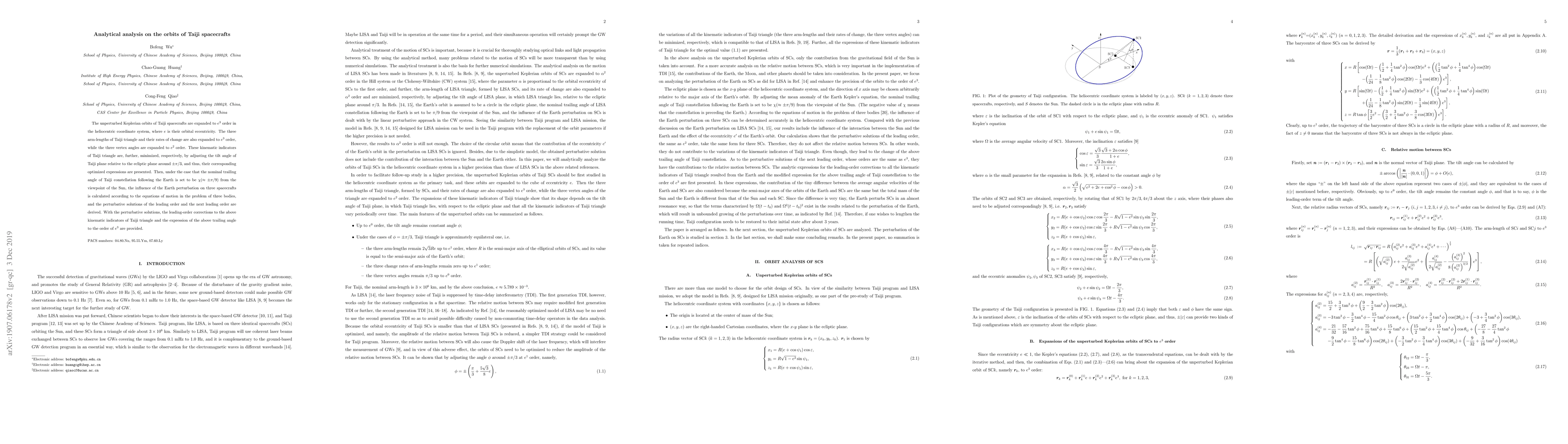 This paper analyzes the orbits of Taiji spacecrafts, expanding their Keplerian orbits and triangle arm-lengths to $e^3$ order, and vertex angles to $e^2$ order. It optimizes these indicators by adjusting the Taiji plane's tilt and derives leading-order perturbative solutions for Earth's influence, providing corrections to the triangle's kinematic indicators and the trailing angle to $e^3$ order.