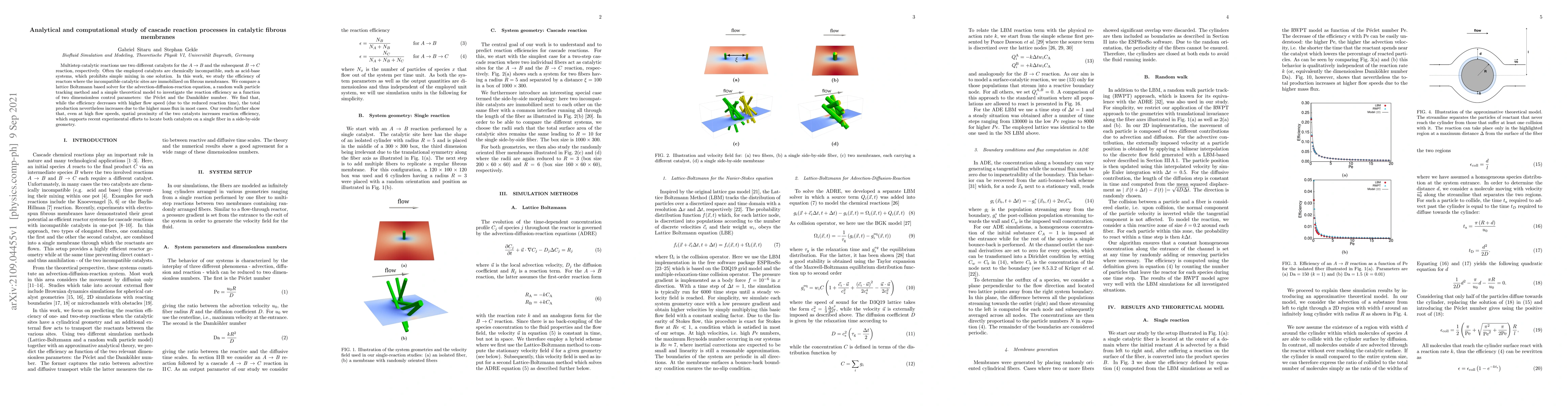 Multistep catalytic reactions use two different catalysts for the $A\to B$ and the subsequent $B\to C$ reaction, respectively. Often the employed catalysts are chemically incompatible, such as acid-base systems, which prohibits simple mixing in one solution. In this work, we study the efficiency of reactors where the incompatible catalytic sites are immobilized on fibrous membranes. We compare a lattice Boltzmann based solver for the advection-diffusion-reaction equation, a random walk particle tracking method and a simple theoretical model to investigate the reaction efficiency as a function of two dimensionless control parameters: the P\'eclet and the Damk\"ohler number. We find that, while the efficiency decreases with higher flow speed (due to the reduced reaction time), the total production nevertheless increases due to the higher mass flux in most cases. Our results further show that, even at high flow speeds, spatial proximity of the two catalysts increases reaction efficiency, which supports recent experimental efforts to locate both catalysts on a single fiber in a side-by-side geometry.