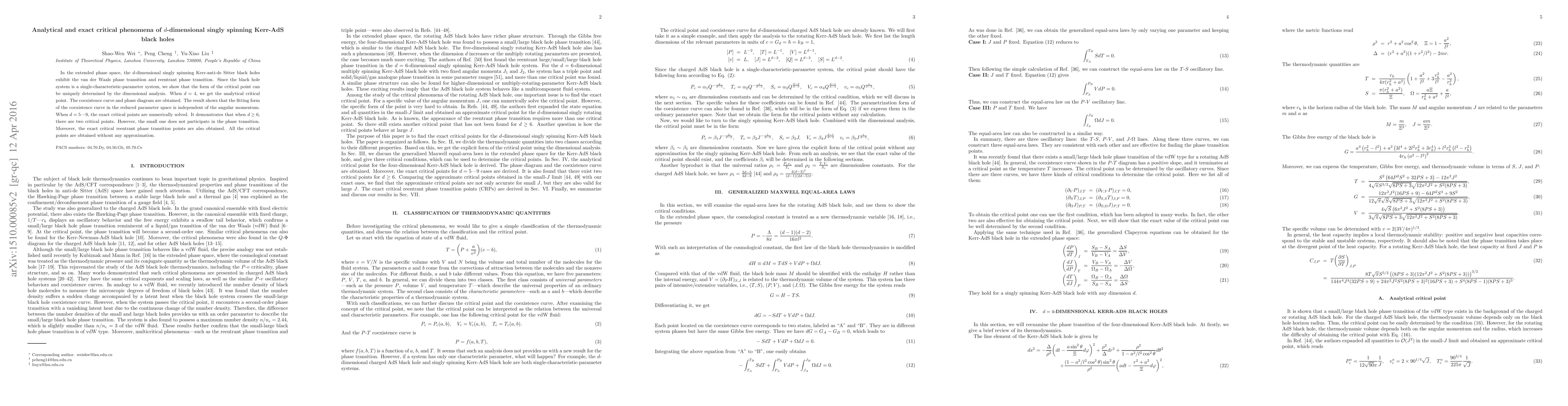In the extended phase space, the $d$-dimensional singly spinning Kerr-AdS black holes exhibit the van der Waals's phase transition and reentrant phase transition. Since the black hole system is a single characteristic parameter thermodynamic system, we show that the form of the critical point can be uniquely determined by the dimensional analysis. When $d=4$, we get the analytical critical point. The coexistence curve and phase diagrams are obtained. The result shows that the fitting form of the coexistence curve in the reduced parameter space is independent of the angular momentum. When $d=5$---$9$, the exact critical points are numerically solved. It demonstrates that when $d\geq6$, there are two critical points. However, the small one does not participate in the phase transition. Moreover, the exact critical reentrant phase transition points are also obtained. All the critical points are obtained without any approximation.