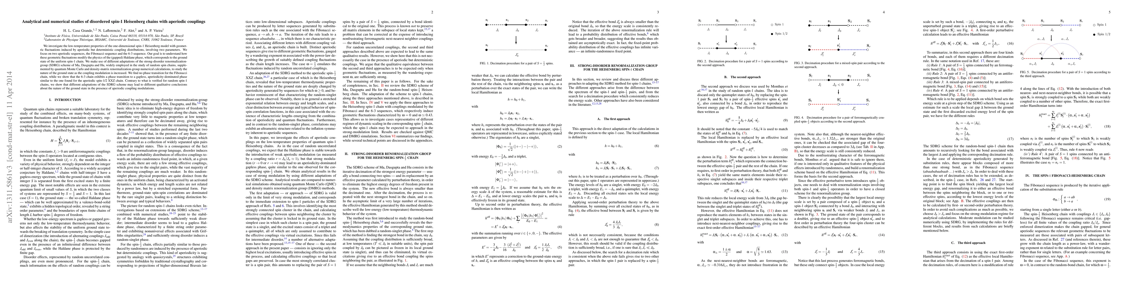 This paper examines the low-temperature behavior of spin-1 Heisenberg chains with aperiodic, yet deterministic, coupling variations using Fibonacci and 6-3 sequences. It finds no phase transition in the Fibonacci chain but a transition to a gapless phase in the 6-3 chain, highlighting the impact of aperiodicity on the Haldane phase.