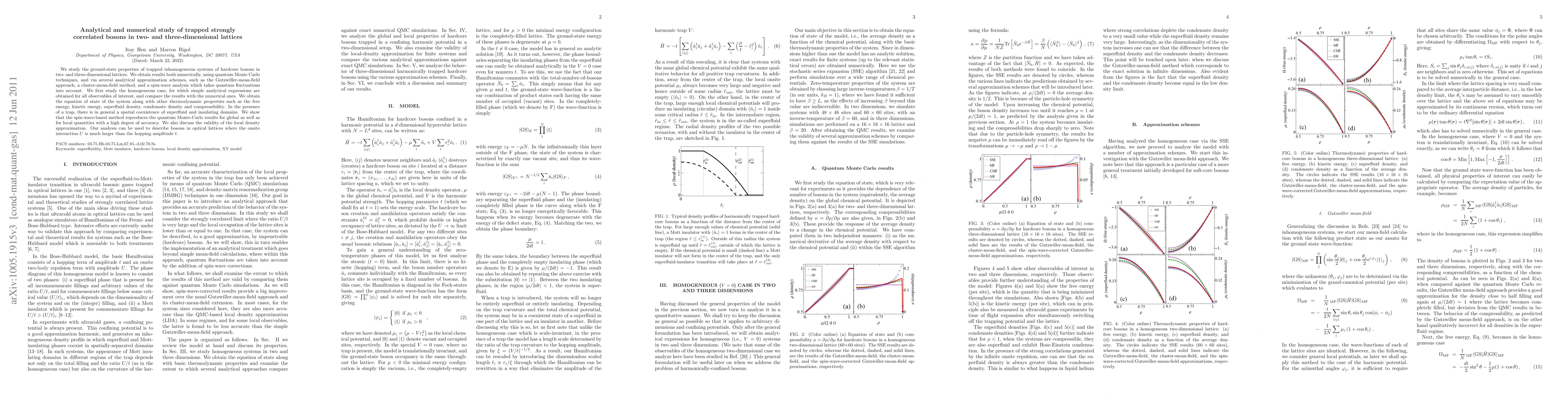 Researchers studied trapped inhomogeneous systems of hardcore bosons in 2D and 3D lattices using numerical and analytical methods, finding that superfluid and insulating domains coexist with varying degrees of accuracy.
