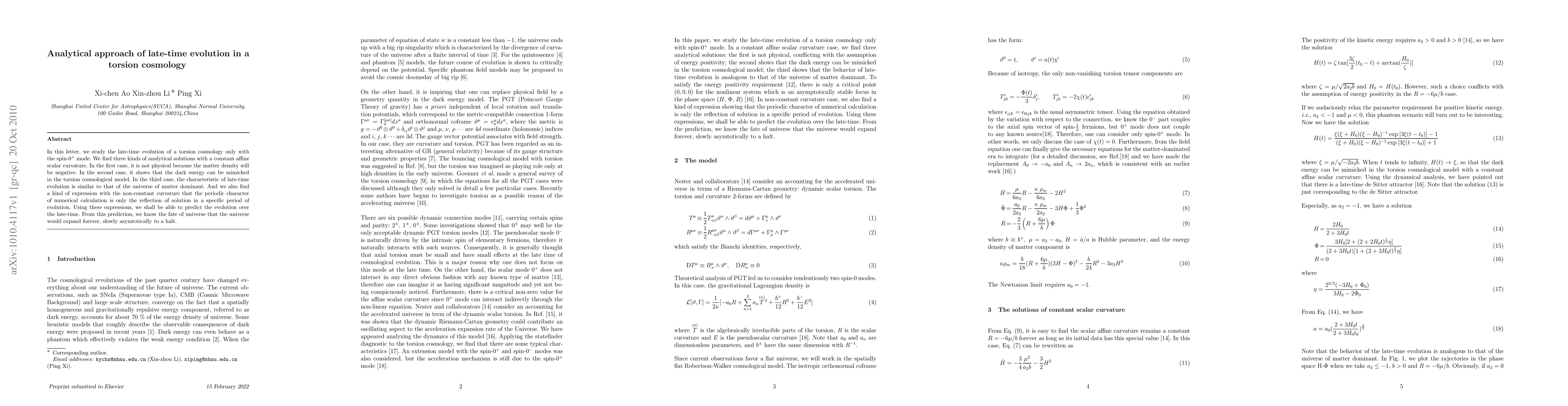 Researchers discovered three types of late-time evolution in a torsion cosmology, including a scenario where dark energy can be mimicked, and another that shows similar behavior to the universe dominated by matter.