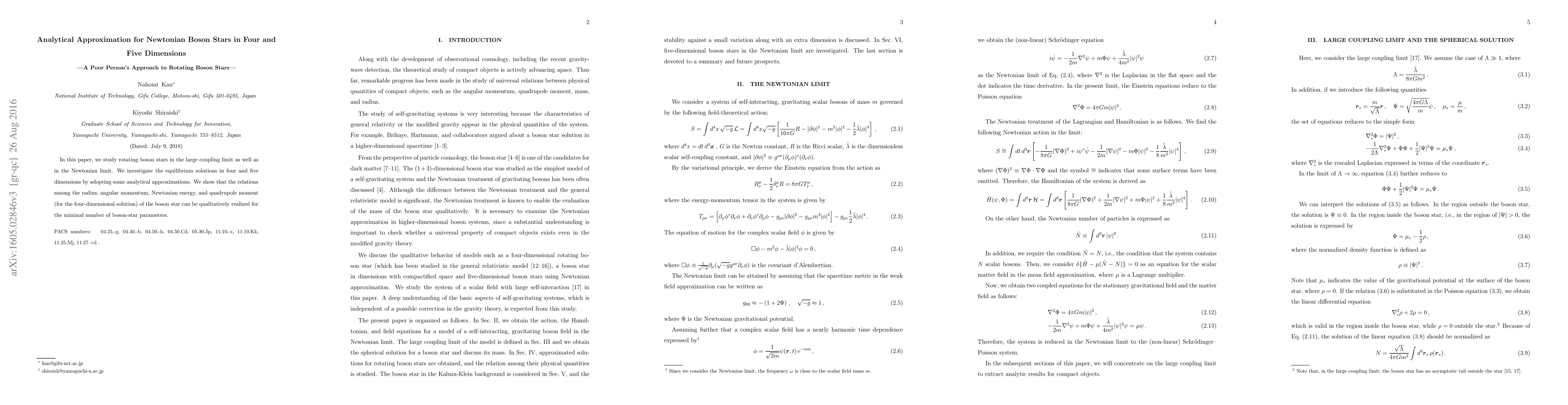 This paper explores rotating boson stars in four and five dimensions using analytical approximations in the large coupling and Newtonian limits. It demonstrates how key relationships among the star's radius, angular momentum, Newtonian energy, and quadrupole moment can be qualitatively understood with minimal parameters.