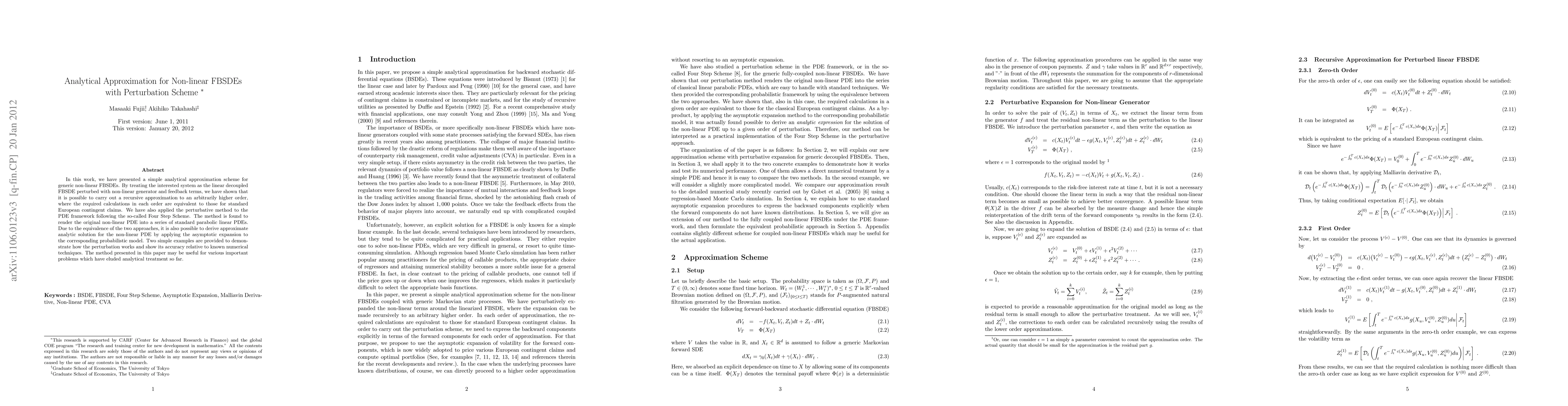 In this work, we have presented a simple analytical approximation scheme for generic non-linear FBSDEs. By treating the interested system as the linear decoupled FBSDE perturbed with non-linear generator and feedback terms, we have shown that it is possible to carry out a recursive approximation to an arbitrarily higher order, where the required calculations in each order are equivalent to those for standard European contingent claims. We have also applied the perturbative method to the PDE framework following the so-called Four Step Scheme. The method is found to render the original non-linear PDE into a series of standard parabolic linear PDEs. Due to the equivalence of the two approaches, it is also possible to derive approximate analytic solution for the non-linear PDE by applying the asymptotic expansion to the corresponding probabilistic model. Two simple examples are provided to demonstrate how the perturbation works and show its accuracy relative to known numerical techniques. The method presented in this paper may be useful for various important problems which have eluded analytical treatment so far.