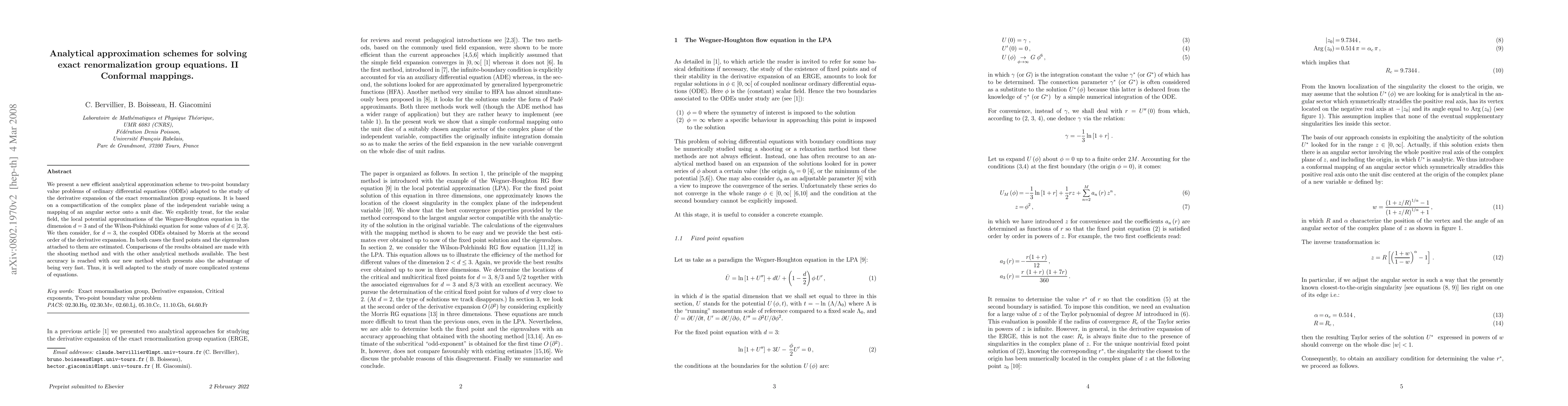 This paper introduces an efficient analytical approximation scheme for solving two-point boundary value problems of ODEs, specifically tailored for the derivative expansion of exact renormalization group equations. It employs conformal mappings to compactify the complex plane, achieving high accuracy and speed compared to other methods.