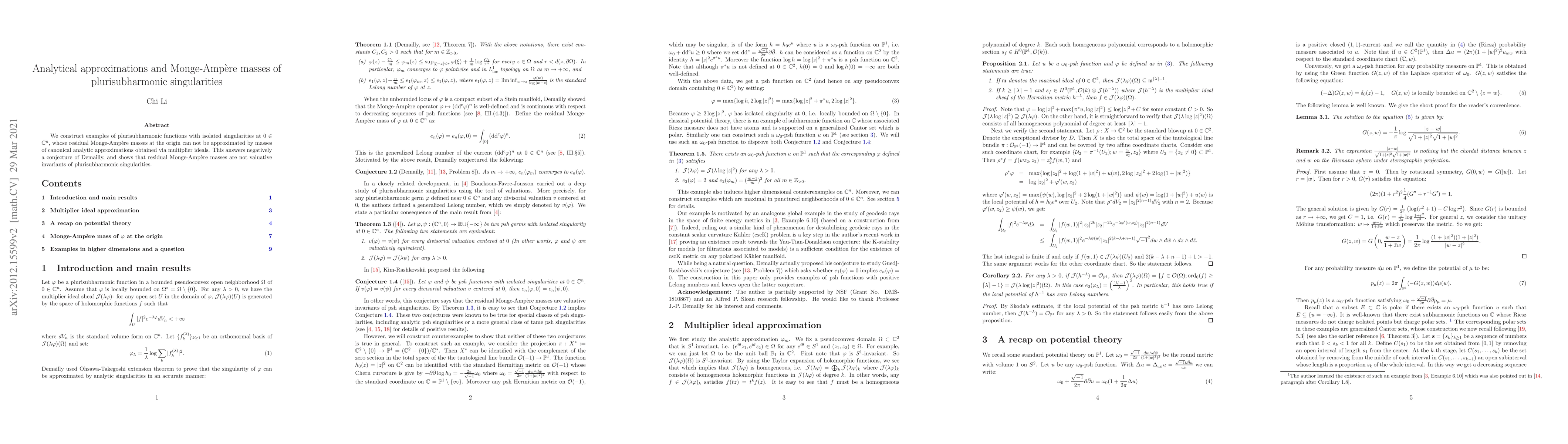 We construct examples of plurisubharmonic functions with isolated singularities at $0\in \mathbb{C}^n$, whose residual Monge-Amp\`{e}re masses at the origin can not be approximated by masses of analytic approximations obtained via multiplier ideals. This answers negatively a conjecture of Demailly.