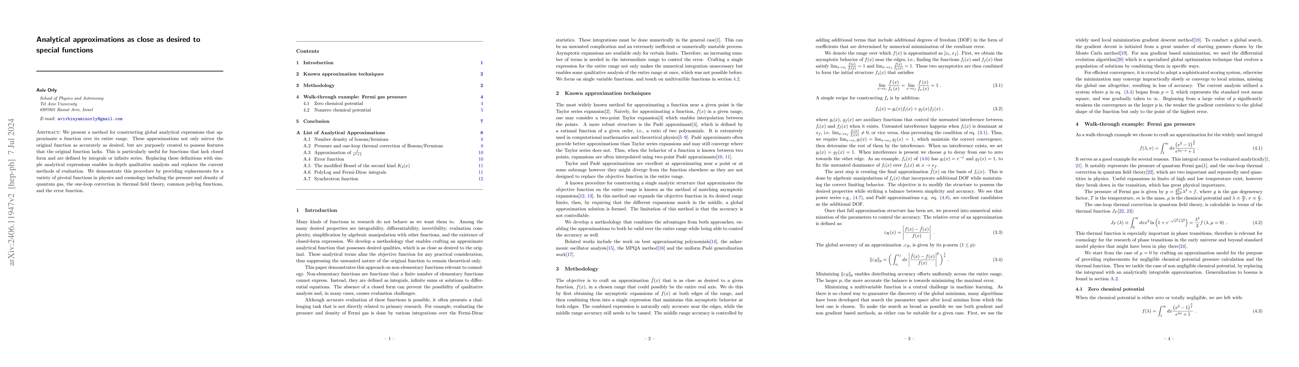We present a method for constructing global analytical expressions that approximate a function over its entire range. These approximations not only mirror the original function as accurately as desired, but are purposefully created to possess features that the original function lacks. This is particularly useful for functions that lack closed form and are defined by integrals or infinite series. Replacing these definitions with simple analytical expressions enables in-depth qualitative analysis and replaces the current methods of evaluation. We demonstrate this procedure by providing replacements for a variety of pivotal functions in physics and cosmology including the pressure and density of quantum gas, the one-loop correction in thermal field theory, common polylog functions, and the error function.