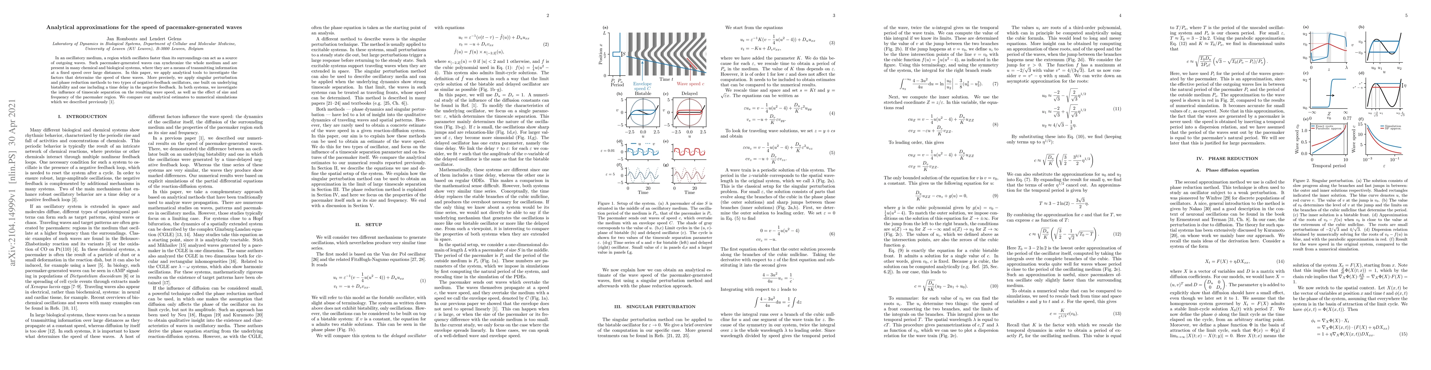 In an oscillatory medium, a region which oscillates faster than its surroundings can act as a source of outgoing waves. Such pacemaker-generated waves can synchronize the whole medium and are present in many chemical and biological systems, where they are a means of transmitting information at a fixed speed over large distances. In this paper, we apply analytical tools to investigate the factors that determine the speed of these waves. More precisely, we apply singular perturbation and phase reduction methods to two types of negative-feedback oscillators, one built on underlying bistability and one including a time delay in the negative feedback. In both systems, we investigate the influence of timescale separation on the resulting wave speed, as well as the effect of size and frequency of the pacemaker region. We compare our analytical estimates to numerical simulations which we described previously [1].