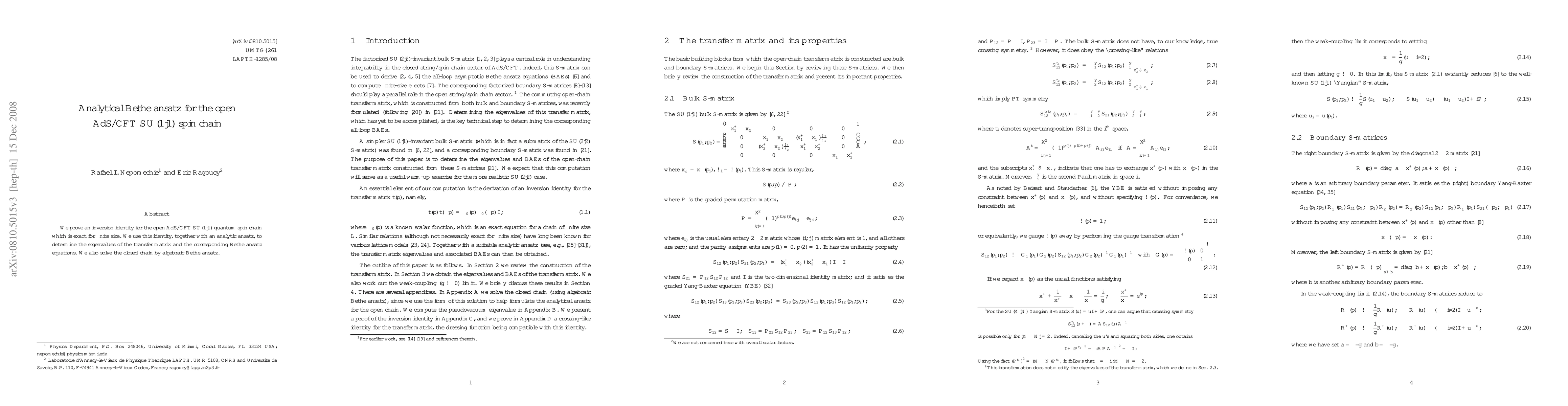 This paper proves an exact inversion identity for the open AdS/CFT SU(1|1) spin chain and uses an analytical Bethe ansatz to determine its transfer matrix eigenvalues and Bethe equations. Additionally, it solves the closed chain using an algebraic Bethe ansatz.