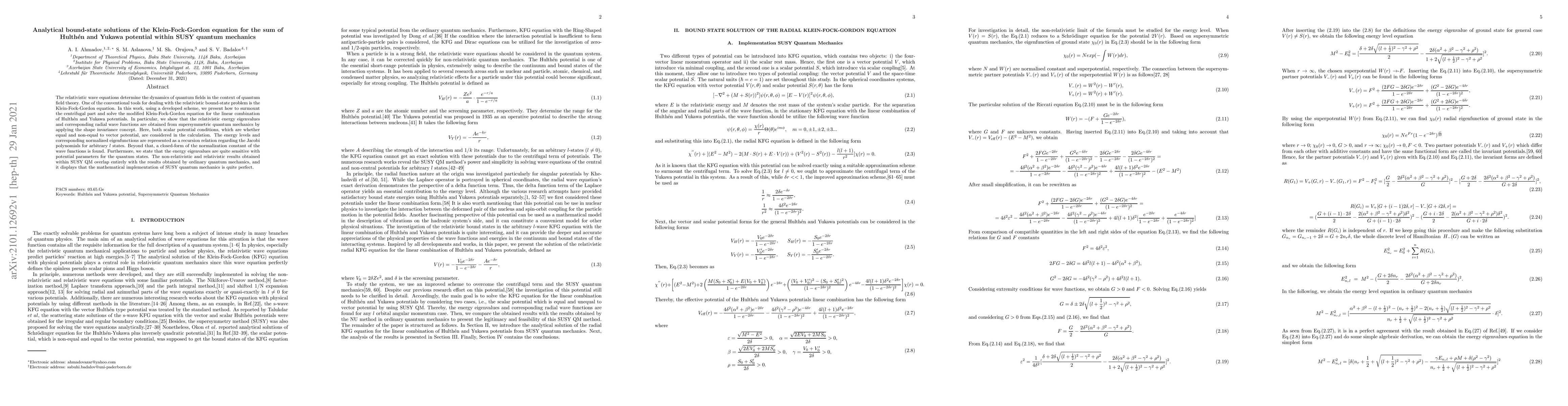 This paper provides analytical solutions to the modified Klein-Fock-Gordon equation for a combined Hulthén and Yukawa potential using supersymmetric quantum mechanics, showing shape invariance and obtaining energy eigenvalues and radial wave functions as recursion relations involving Jacobi polynomials. The energy eigenvalues are found to be sensitive to potential parameters.