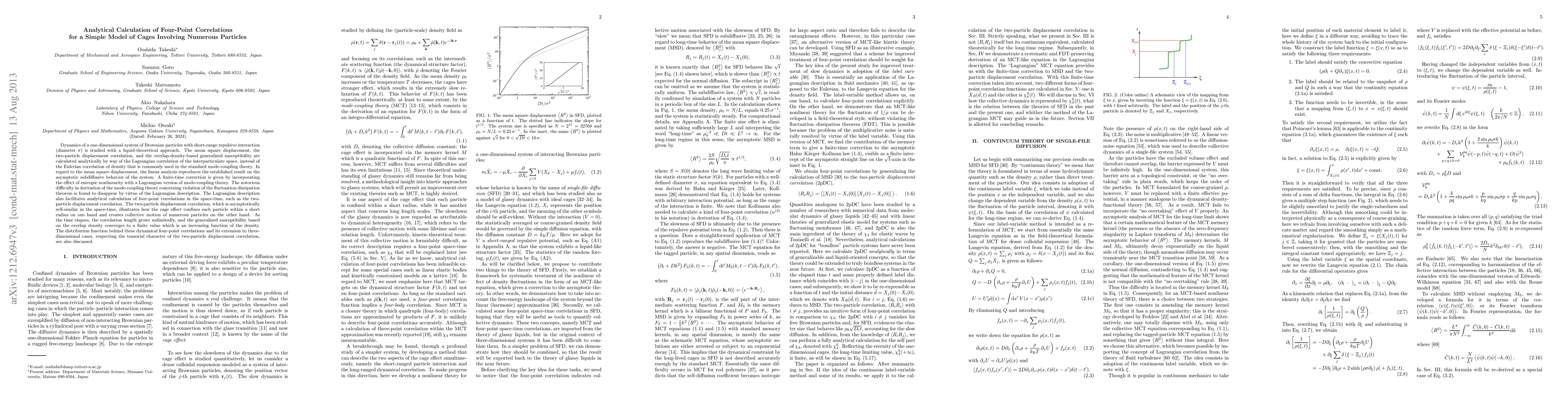 Dynamics of a one-dimensional system of Brownian particles with short-range repulsive interaction (diameter sigma) is studied with a liquid-theoretical approach. The mean square displacement, the two-particle displacement correlation, and the overlap-density-based generalized susceptibility are calculated analytically by way of the Lagrangian correlation of the interparticulate space, instead of the Eulerian correlation of density that is commonly used in the standard mode-coupling theory. In regard to the mean square displacement, the linear analysis reproduces the established result on the asymptotic subdiffusive behavior of the system. A finite-time correction is given by incorporating the effect of entropic nonlinearity with a Lagrangian version of mode-coupling theory. The notorious difficulty in derivation of the mode-coupling theory concerning violation of the fluctuation-dissipation theorem is found to disappear by virtue of the Lagrangian description. The Lagrangian description also facilitates analytical calculation of four-point correlations in the space-time, such as the two-particle displacement correlation. The two-particle displacement correlation, which is asymptotically self-similar in the space-time, illustrates how the cage effect confines each particle within a short radius on one hand and creates collective motion of numerous particles on the other hand. As the time elapses, the correlation length grows unlimitedly, and the generalized susceptibility based on the overlap density converges to a finite value which is an increasing function of the density. The distribution function behind these dynamical four-point correlations and its extension to three-dimensional cases, respecting the tensorial character of the two-particle displacement correlation, are also discussed.