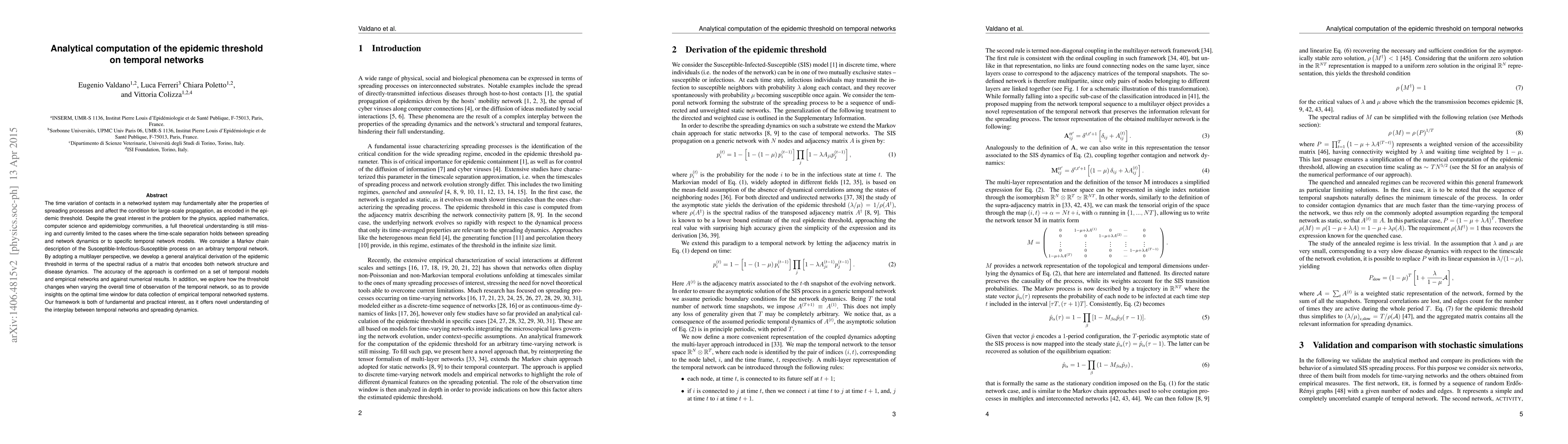 This paper develops a general analytical method to compute the epidemic threshold on temporal networks, using a multilayer Markov chain approach. The framework provides insights into the optimal observation time for data collection and is validated against various temporal models and empirical networks.