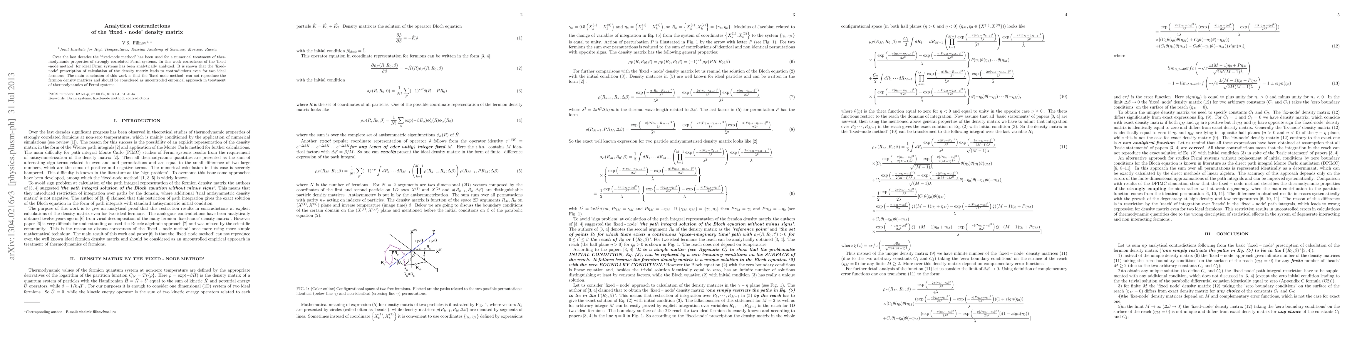 Over the last decades the 'fixed-node method' has been used for a numerical treatment of thermodynamic properties of strongly correlated Fermi systems. In this work correctness of the 'fixed -node method' for ideal Fermi systems has been analytically analyzed. It is shown that the 'fixed-node' prescription of calculation of the density matrix leads to contradictions even for two ideal fermions. The main conclusion of this work is that the 'fixed-node method' can not reproduce the fermion density matrices and should be considered as uncontrolled empirical approach in treatment of thermodynamics of Fermi systems.
