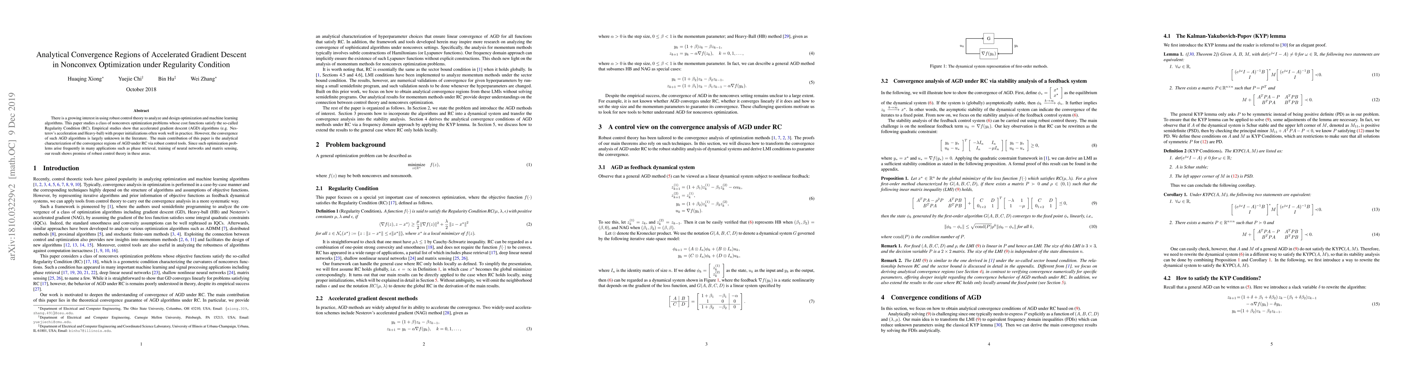 There is a growing interest in using robust control theory to analyze and design optimization and machine learning algorithms. This paper studies a class of nonconvex optimization problems whose cost functions satisfy the so-called Regularity Condition (RC). Empirical studies show that accelerated gradient descent (AGD) algorithms (e.g. Nesterov's acceleration and Heavy-ball) with proper initializations often work well in practice. However, the convergence of such AGD algorithms is largely unknown in the literature. The main contribution of this paper is the analytical characterization of the convergence regions of AGD under RC via robust control tools. Since such optimization problems arise frequently in many applications such as phase retrieval, training of neural networks and matrix sensing, our result shows promise of robust control theory in these areas.
