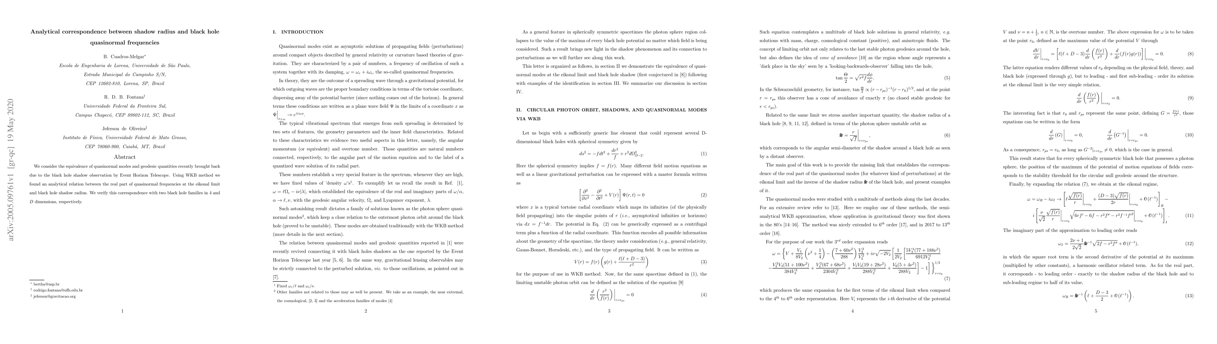 This paper establishes an analytical relationship between the shadow radius of a black hole and its quasinormal frequencies using the WKB method, verifying this correspondence across two families of black holes in 4 and higher dimensions. The findings support the equivalence between quasinormal modes and geodesic quantities observed in black hole shadows.