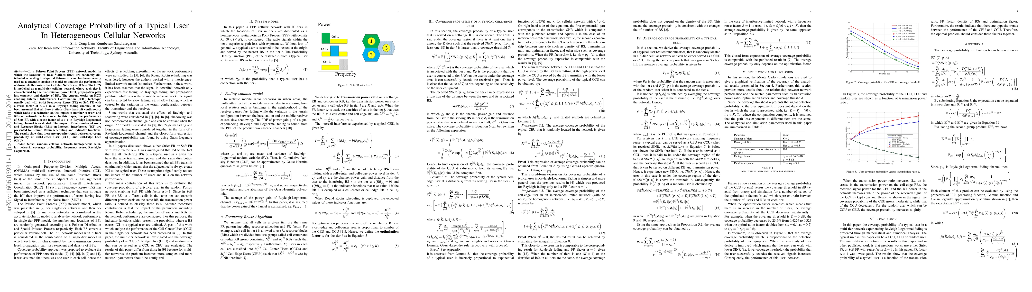 In a Poisson Point Process (PPP) network model, in which the locations of Base Stations (BSs) are randomly distributed according to a Spatial Poisson Process, has been recently used as a tractable stochastic model to analyse the performance of downlink Heterogeneous Cellular Networks (HCNs). The HCN is modelled as a multi-tier cellular network where each tier is characterised by the transmission power level, propagation path loss exponent and density of BSs. The current works on HCN enabling Intercell Interference Coordination (ICIC) technique usually deal with Strict Frequency Reuse (FR) or Soft FR with a reuse factor of $\Delta=1$ in a Rayleigh fading channel. It has been assumed that all Base Stations (BSs) transmit continuously which leads to a reduction on the impact of number of users and RBs on network performance. In this paper, the performance of Soft FR with a reuse factor of $\Delta>1$ in Rayleigh-Lognormal fading channel is evaluated. The impact of the number of users and Resource Blocks (RBs) on Intercell Interference (ICI) are presented for Round Robin scheduling and indicator functions. The results show that there are opposite trends between coverage probability of Cell-Center User (CCU) and Cell-Edge User (CEU).