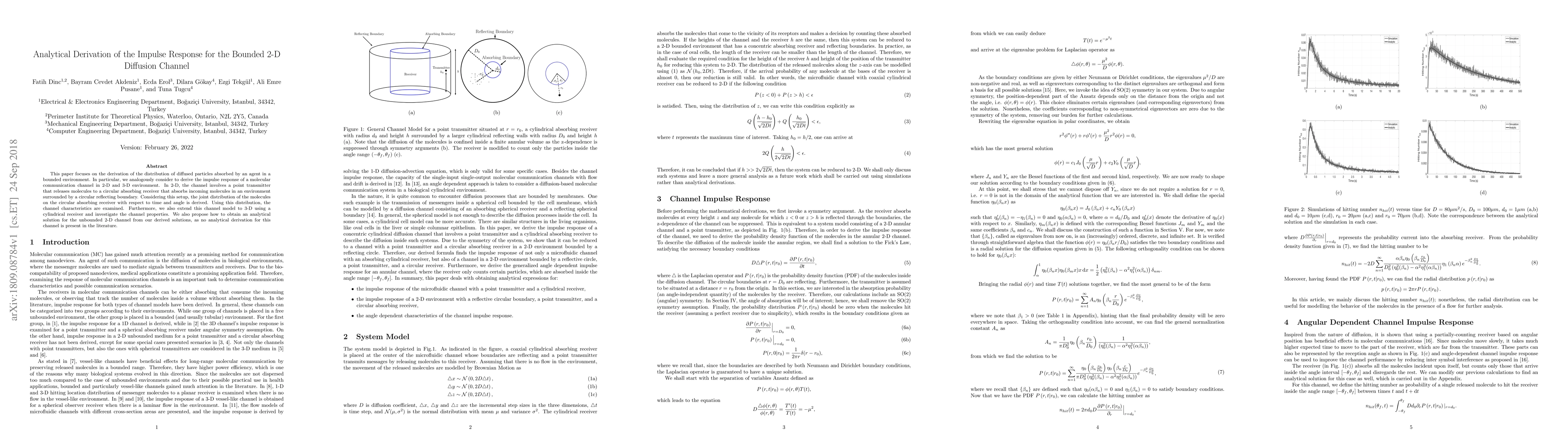 This paper focuses on the derivation of the distribution of diffused particles absorbed by an agent in a bounded environment. In particular, we analogously consider to derive the impulse response of a molecular communication channel in 2-D and 3-D environment. In 2-D, the channel involves a point transmitter that releases molecules to a circular absorbing receiver that absorbs incoming molecules in an environment surrounded by a circular reflecting boundary. Considering this setup, the joint distribution of the molecules on the circular absorbing receiver with respect to time and angle is derived. Using this distribution, the channel characteristics are examined. Furthermore, we also extend this channel model to 3-D using a cylindrical receiver and investigate the channel properties. We also propose how to obtain an analytical solution for the unbounded 2-D channel from our derived solutions, as no analytical derivation for this channel is present in the literature.