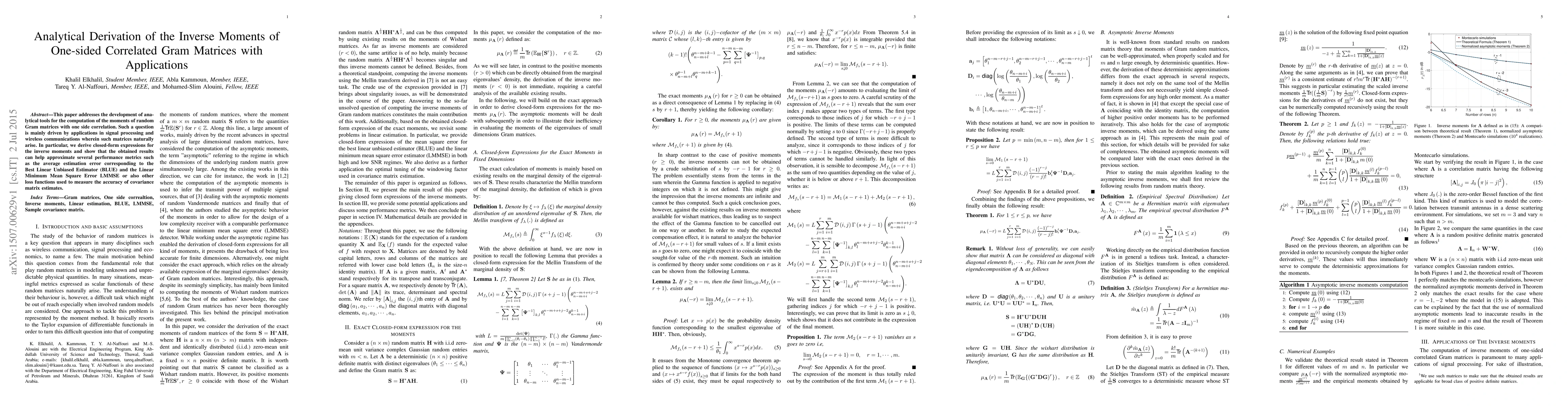 This paper addresses the development of analytical tools for the computation of the moments of random Gram matrices with one side correlation. Such a question is mainly driven by applications in signal processing and wireless communications wherein such matrices naturally arise. In particular, we derive closed-form expressions for the inverse moments and show that the obtained results can help approximate several performance metrics such as the average estimation error corresponding to the Best Linear Unbiased Estimator (BLUE) and the Linear Minimum Mean Square Error LMMSE or also other loss functions used to measure the accuracy of covariance matrix estimates.