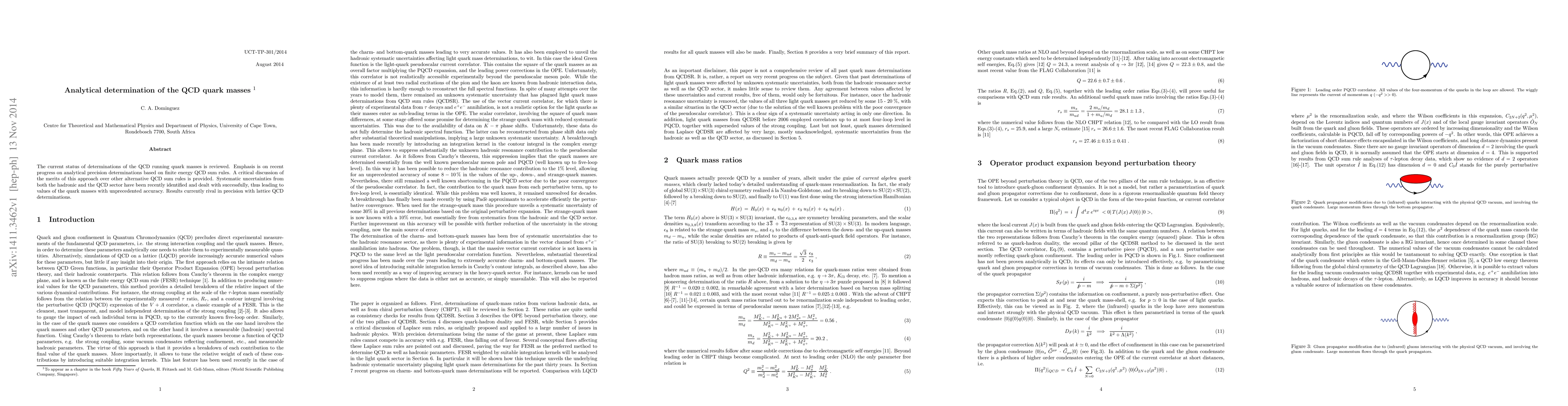 This paper reviews recent advancements in the analytical precision determination of QCD quark masses using finite energy QCD sum rules, highlighting the approach's advantages over other methods. The study addresses systematic uncertainties, achieving unprecedented accuracy that rivals lattice QCD determinations.