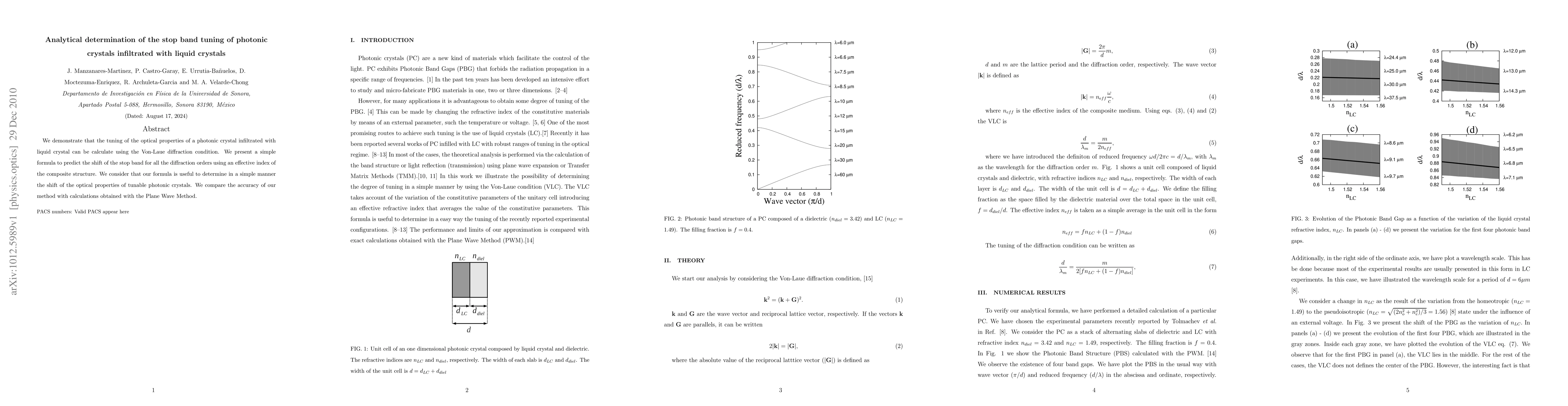 The research uses the Von-Laue diffraction condition to calculate the tuning of optical properties in photonic crystals infiltrated with liquid crystals. An effective index of the composite structure is employed to predict the shift of the stop band for all diffraction orders.