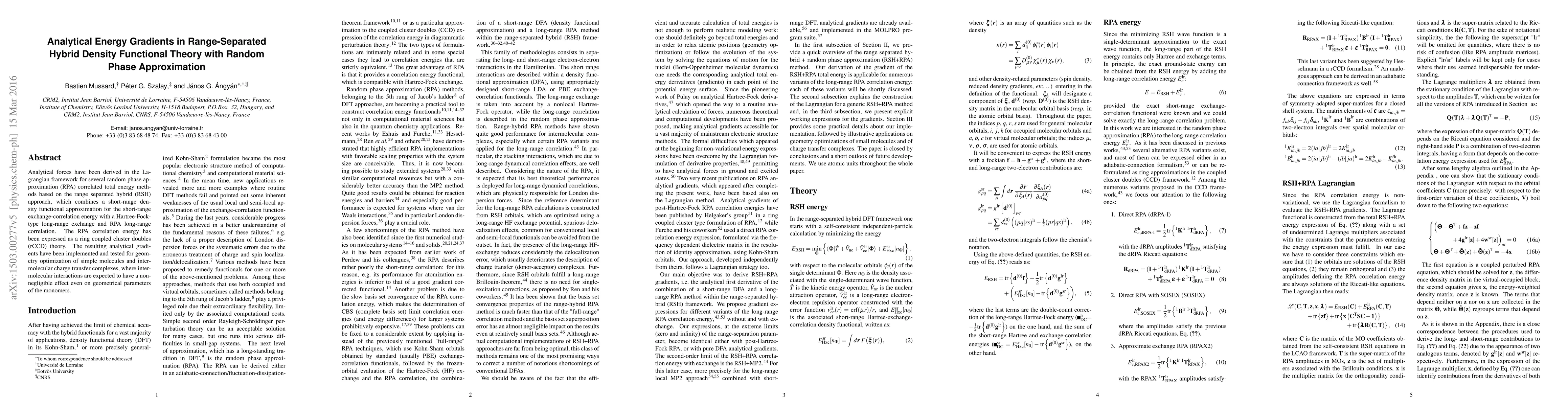 Analytical forces have been derived in the Lagrangian framework for several random phase approximation (RPA) correlated total energy methods based on the range separated hybrid (RSH) approach, which combines a short-range density functional approximation for the short-range exchange-correlation energy with a Hartree-Fock-type long-range exchange and RPA long-range correlation. The RPA correlation energy has been expressed as a ring coupled cluster doubles (rCCD) theory. The resulting analytical gradients have been implemented and tested for geometry optimization of simple molecules and intermolecular charge transfer complexes, where intermolecular interactions are expected to have a non-negligible effect even on geometrical parameters of the monomers.