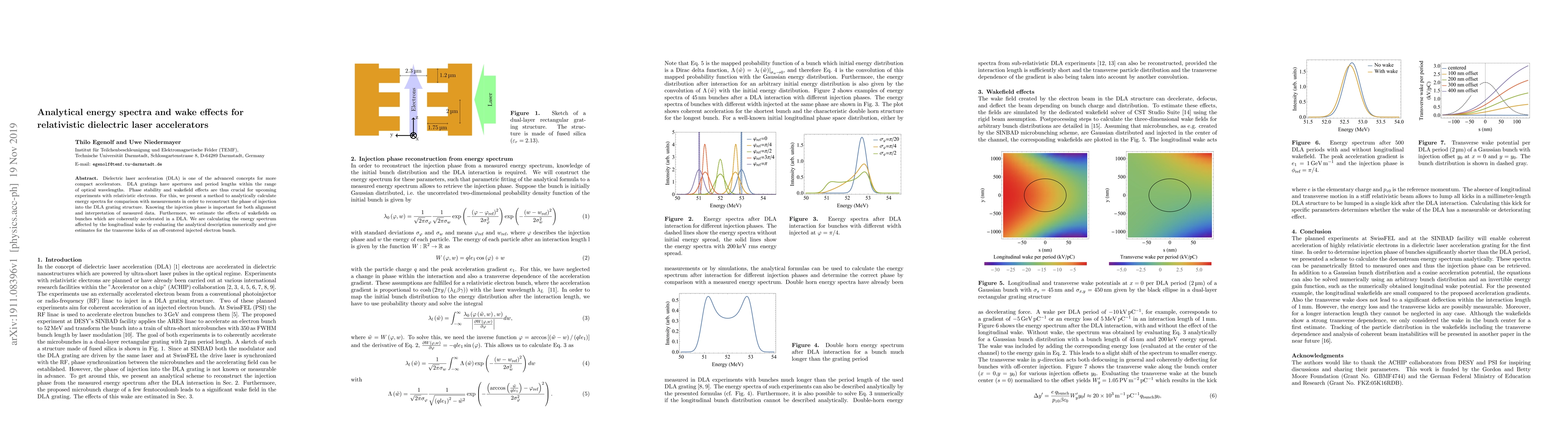 This paper presents an analytical method for calculating energy spectra in dielectric laser accelerators (DLA) to aid in phase stability and data interpretation. It also estimates the wakefield effects on electron bunches, providing numerical evaluations for both longitudinal energy changes and transverse kicks.