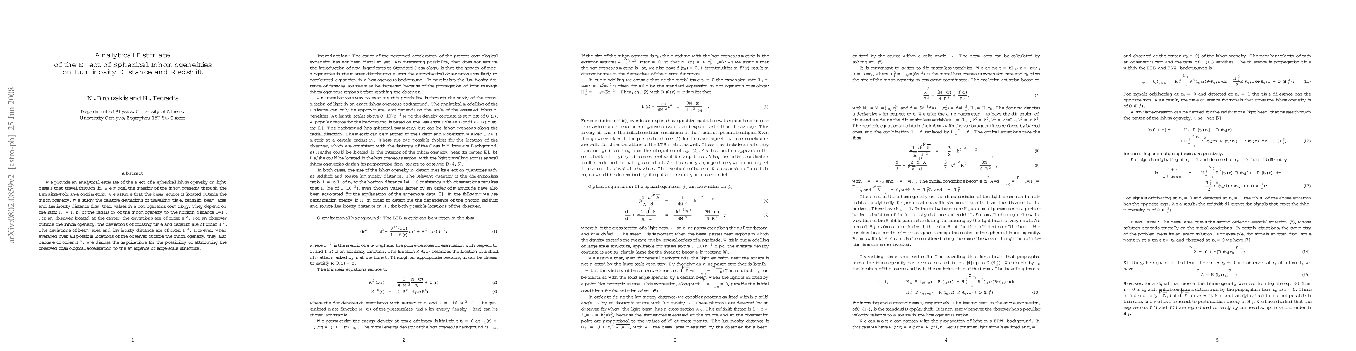 We provide an analytical estimate of the effect of a spherical inhomogeneity on light beams that travel through it. We model the interior of the inhomogeneity in terms of the Lemaitre-Tolman-Bondi metric. We assume that the beam source is located outside the inhomogeneity. We study the relative deviations of travelling time, redshift, beam area and luminosity distance from their values in a homogeneous cosmology. They depend on the ratio Hb=H r_0 of the radius r_0 of the inhomogeneity to the horizon distance 1/H. For an observer located at the center, the deviations are of order Hb^2. For an observer outside the inhomogeneity, the deviations of crossing time and redshift are of order Hb^3. The deviations of beam area and luminosity distance are of order Hb^2. However, when averaged over all possible locations of the observer outside the inhomogeneity, they also become of order Hb^3. We discuss the implications for the possibility of attributing the observed cosmological acceleration to the emergence of large-scale structure.