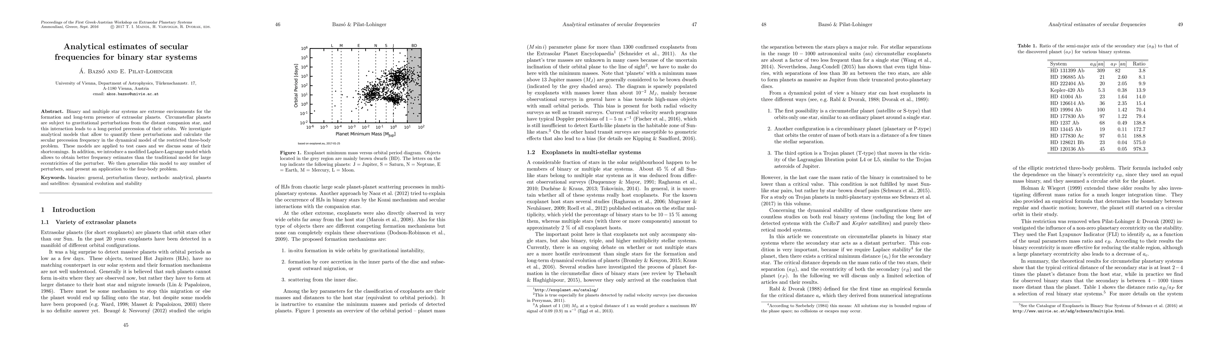 Binary and multiple star systems are extreme environments for the formation and long-term presence of extrasolar planets. Circumstellar planets are subject to gravitational perturbations from the distant companion star, and this interaction leads to a long-period precession of their orbits. We investigate analytical models that allow to quantify these perturbations and calculate the secular precession frequency in the dynamical model of the restricted three-body problem. These models are applied to test cases and we discuss some of their shortcomings. In addition, we introduce a modified Laplace-Lagrange model which allows to obtain better frequency estimates than the traditional model for large eccentricities of the perturber. We then generalize this model to any number of perturbers, and present an application to the four-body problem.