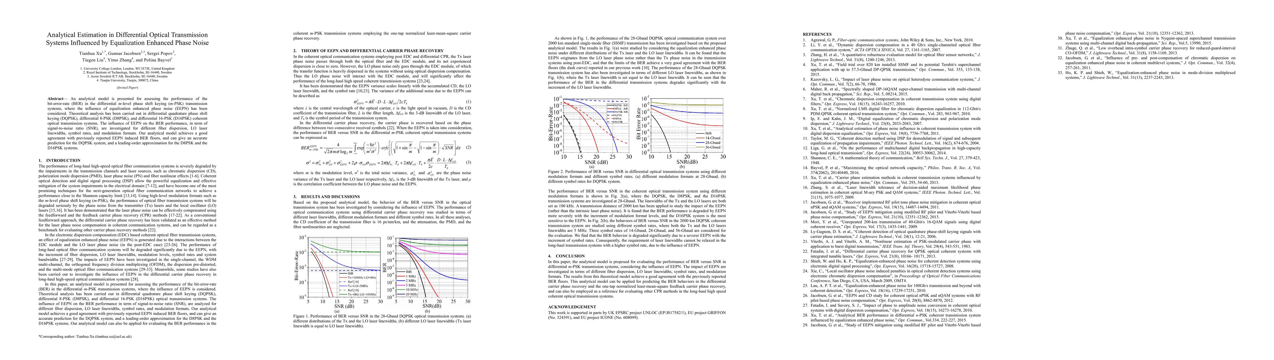 This paper presents an analytical model to evaluate the bit-error-rate (BER) in differential m-PSK optical transmission systems, considering the impact of equalization enhanced phase noise (EEPN). The model accurately predicts BER performance under various conditions, showing good agreement with empirical data and providing leading-order approximations for different modulation formats.